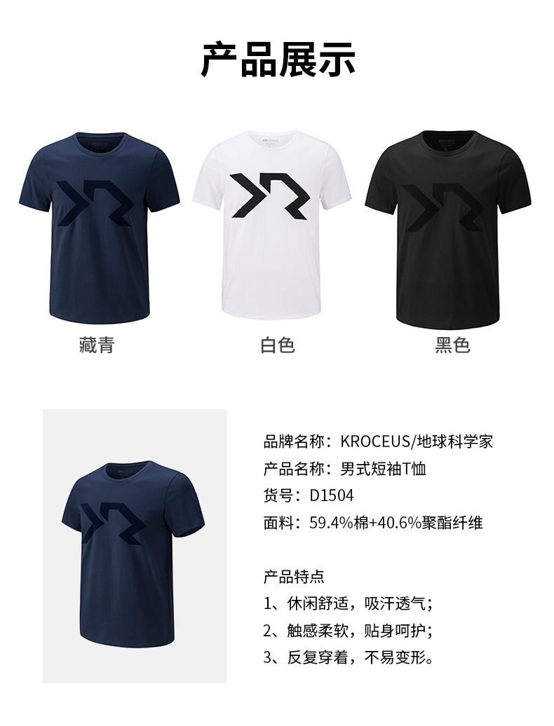 这款地球科学家男吸湿T恤,采用59.4%棉+40.6%聚酯纤维混纺而成,拥有接近纯棉的轻柔手感和舒适度,面料质地轻盈,吸湿透气性好,易清洗不易变形。