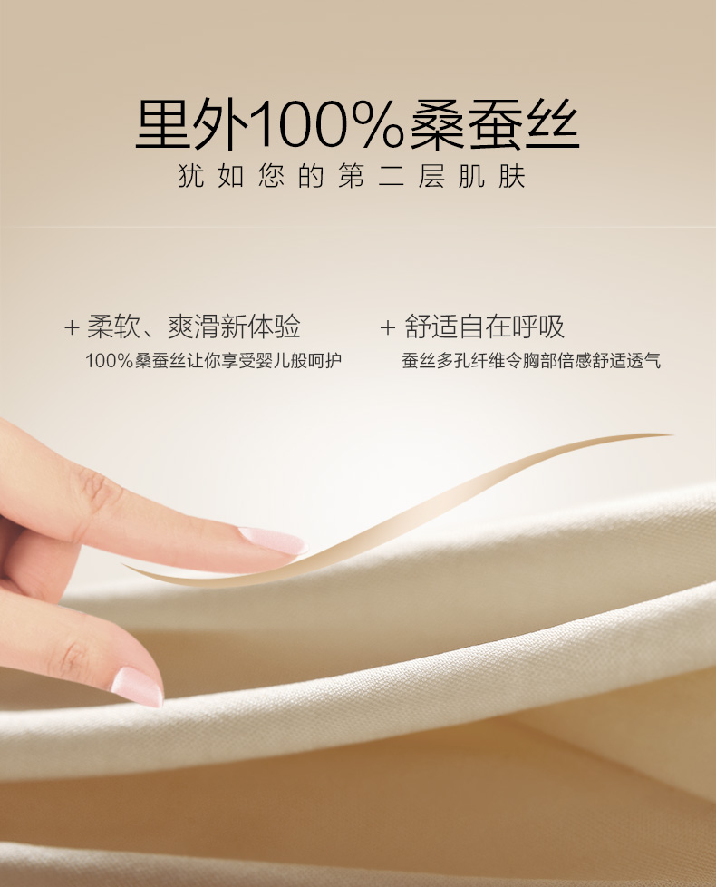 这款金三塔 双面真丝美肤透气无钢圈内衣 ,里外100%桑蚕丝面料,柔软、爽滑;经典光面设计,舒适更易搭;无钢圈软棉围,0压力0束缚。