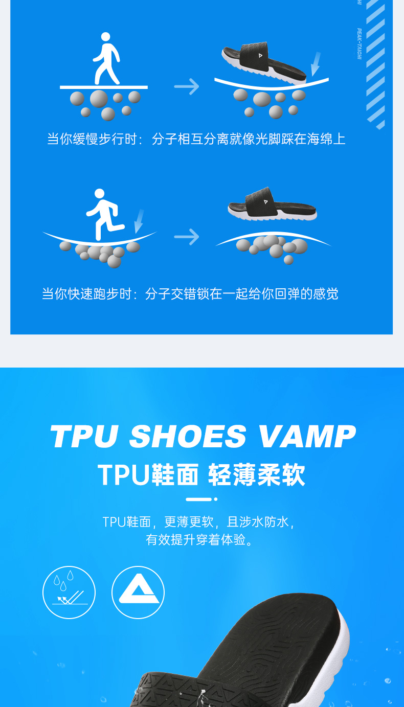 这款PEAK 匹克 态极,男女款拖鞋,采用全掌态极中底,自适应黑科技,可软可弹,换弹舒适;TPU柔软斜面,更薄更软,且涉水防水;一字带宽开口鞋头,前开口更宽更高,让行走更加舒适,图灵纹防滑大底,平稳抓地。专属太极科技标识,辨识度高,让人过目不忘。