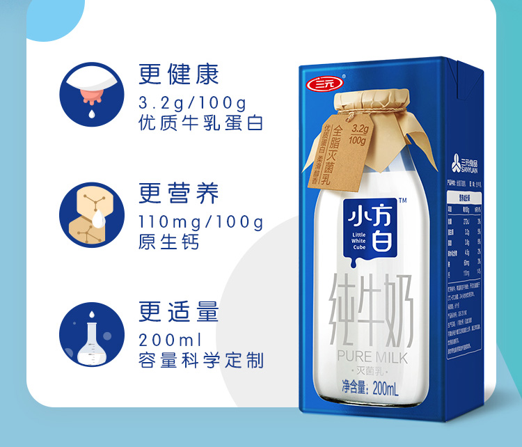 天猫超市56.9元,可领8元优惠券,实付48.9元到手,规格为200ml*24盒。三元是北京三元食品股份有限公司,简称“三元食品”是以奶也为主的中外合资企业。该款三元 小方白纯牛奶,口感香柔醇滑,口味纯正,3.2g/100g优质牛乳蛋白,纯天然无添加,营养丰富更健康,全脂灭菌乳纯牛奶。