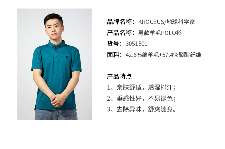 这款地球科学家Polo衫属于轻奢羊毛系列,采用57.4%聚酯+42.6%美丽奴羊毛混纺而成,摸起来手感柔软不扎人,上身非常舒适,还有吸湿透气抑菌抗臭的优点,由于有聚酯的混入,增强了耐久性,无论是日常或者运动都能穿,尤其适合爱出汗的人士。