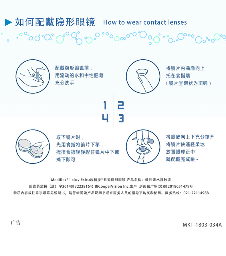 低镜片设计,减少眨眼间与镜片的摩擦,有效降低异物感,增加瞬目的舒适度;镜片边缘采用干式膜铸工艺,使表面更加光滑,成形性好,更易于操作,对初期佩戴者尤其方便。规格:30片。