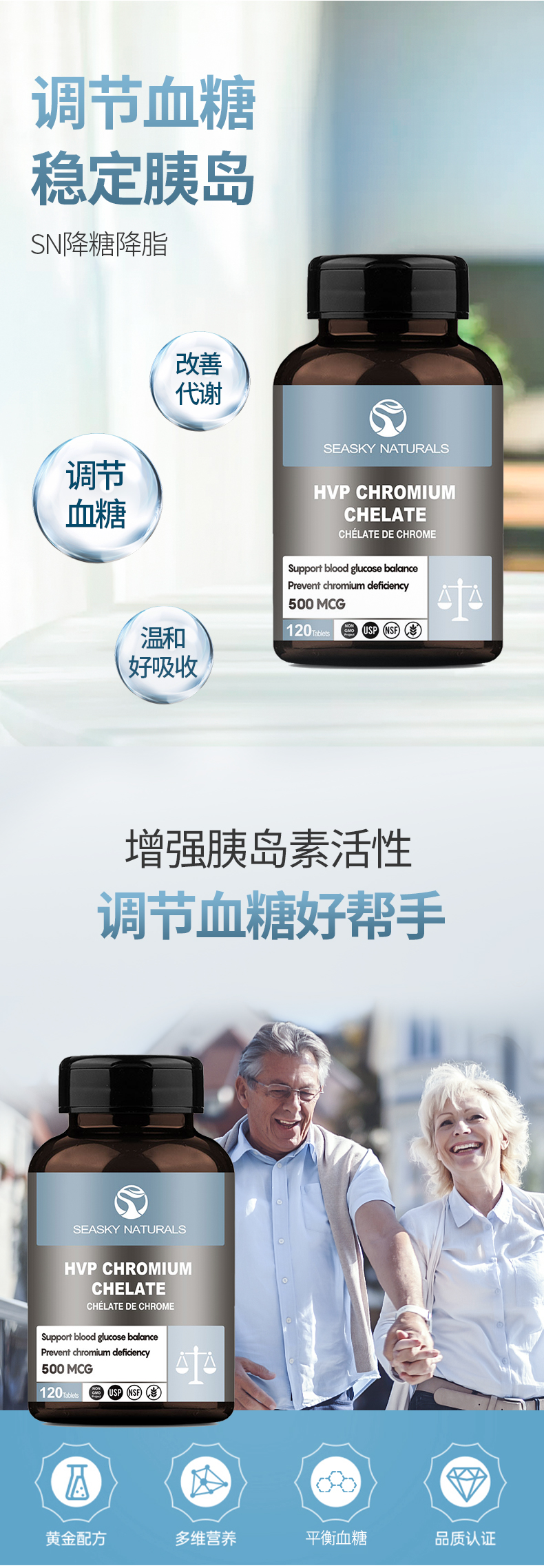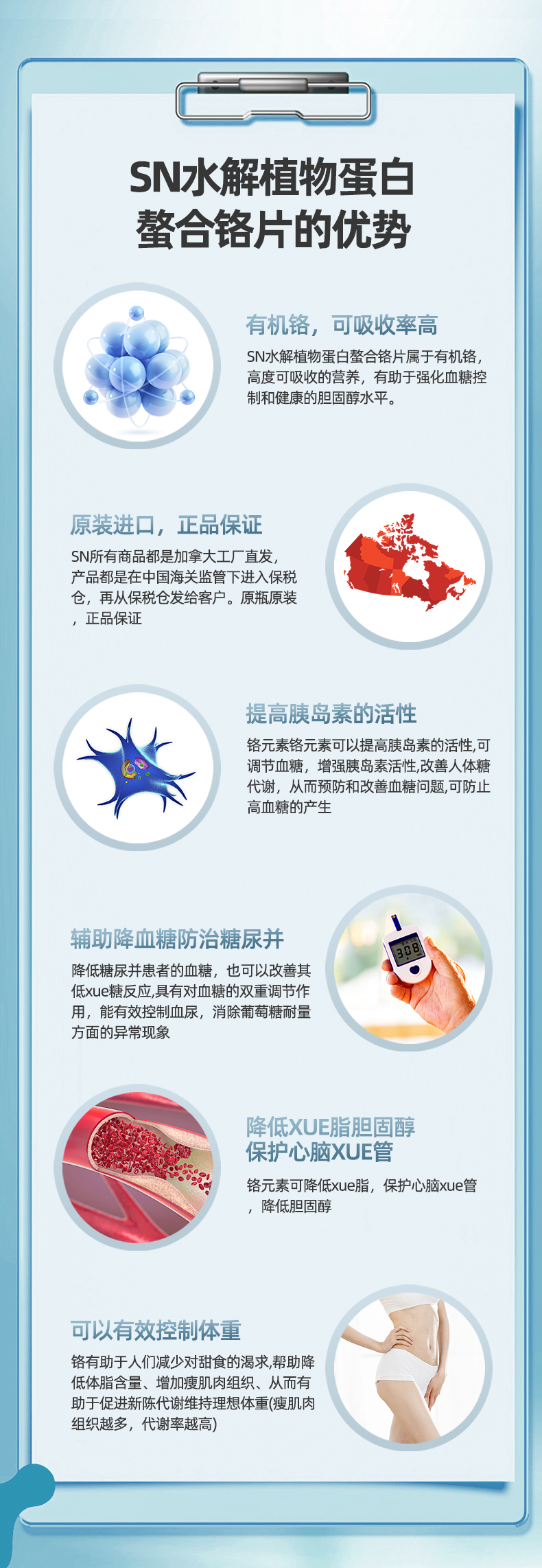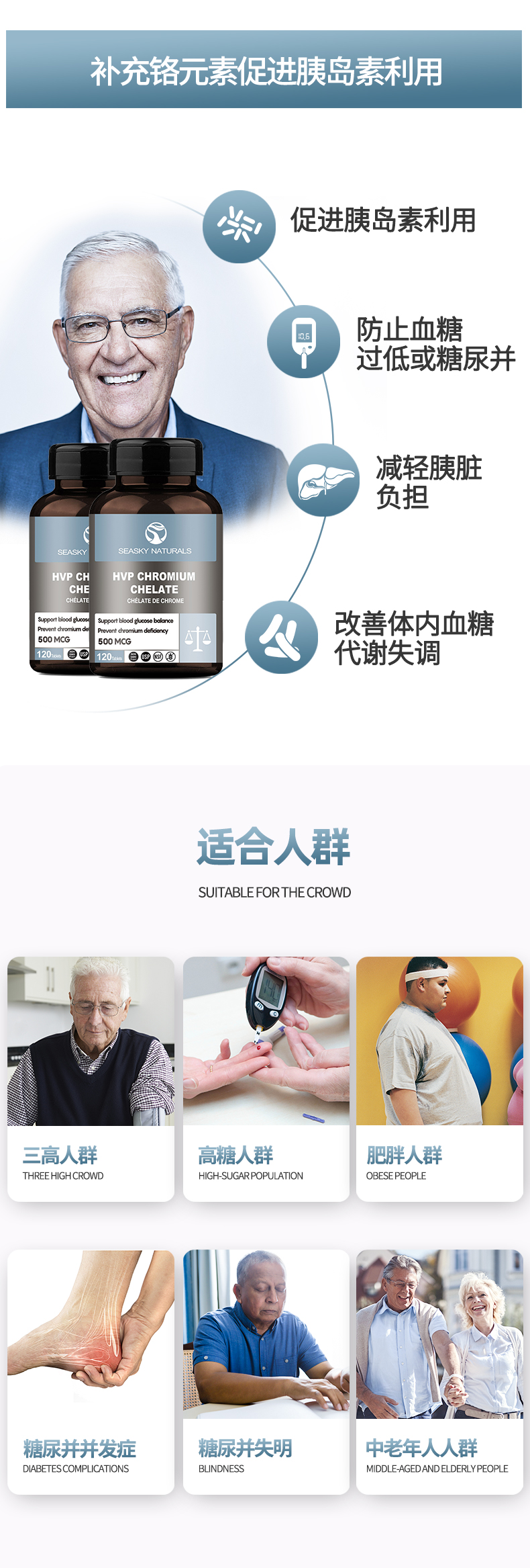 铬作为一种必要的微量营养元素在所有胰岛素调节活动中起重要作用,它能帮助胰岛素促进葡萄糖进入细胞内的效率,是重要的血糖调节剂。在血糖调节方面,特别是对糖尿病患者而言有着重要的作用。