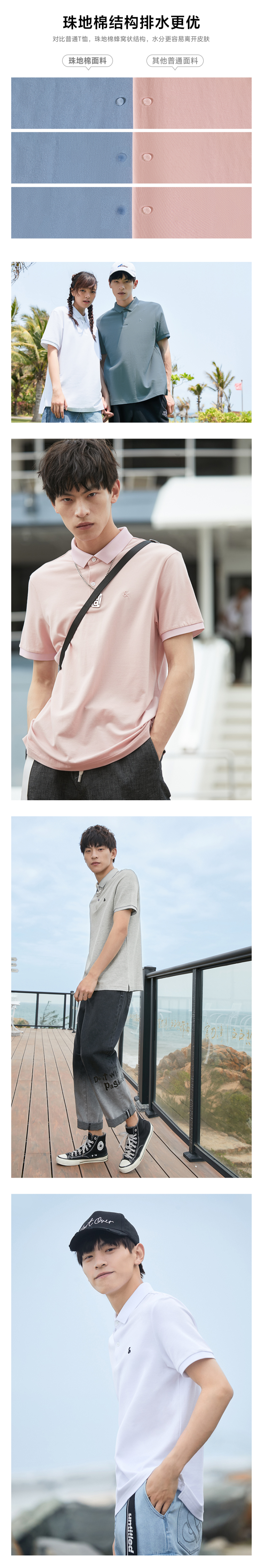 且面料不易褶皱起球、耐磨损,水洗后也比较稳定不缩水,打理起来很方便。因为其众多的优越性,很多国际大品牌的衬衫、Polo衫都使用珠地棉制作。