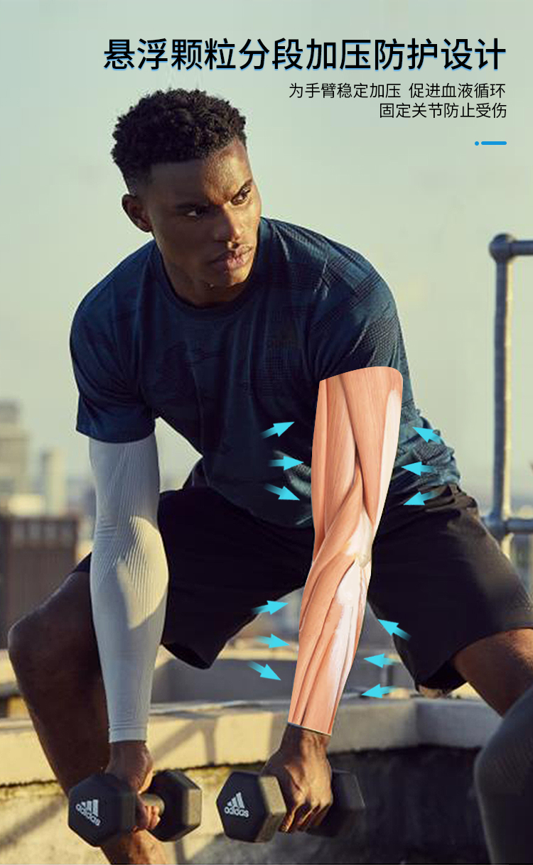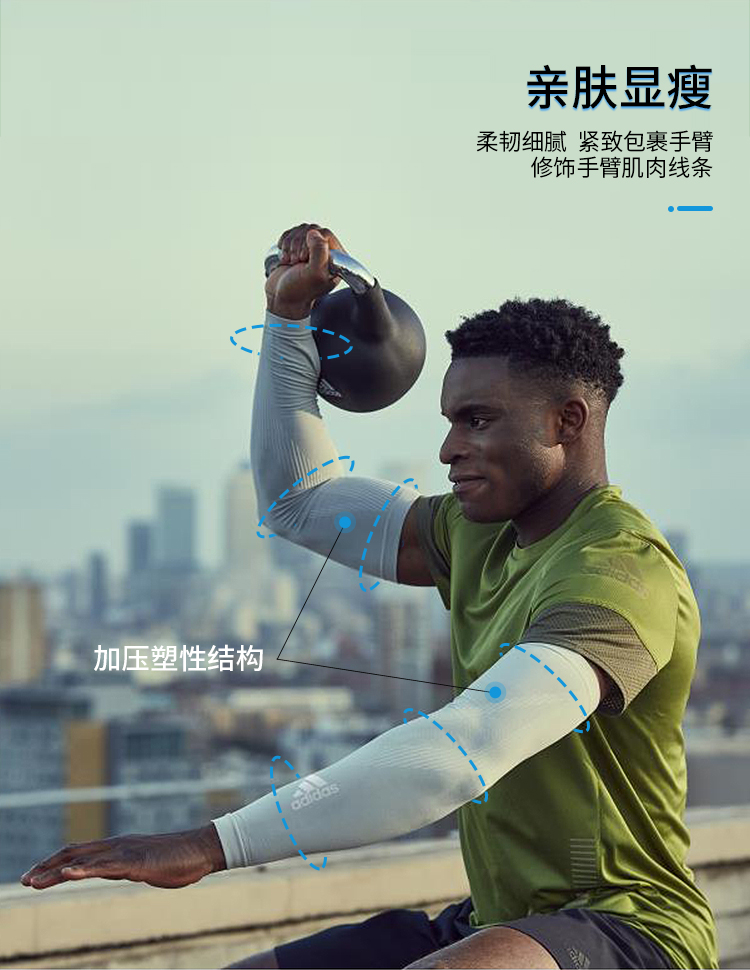 这款阿迪的运动冰袖采用15%氨纶+85%尼龙的材质,具有四面弹性,且耐穿耐用,无缝一体针织,上身舒适不会有异物感,表层根据人体的肌肉走向,采用悬浮颗粒分段加压防护,为手臂稳定加压,促进血液循环,同时防止运动时受伤,小臂部位有阿迪的logo标志,既能区分佩戴方向,又简约有质感。