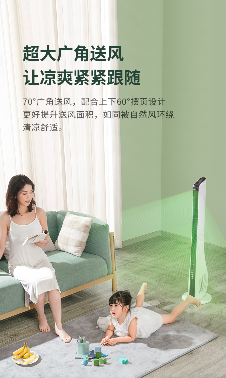 全新Coreturbine风道设计,风很柔和,线下专柜389元一台,三挡调节,70°摇头,15小时定时,40W功率超省电,静音柔风,母婴可用,大牌信的过。