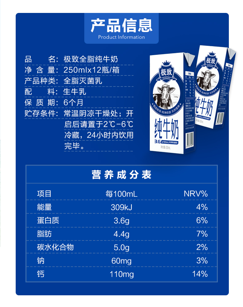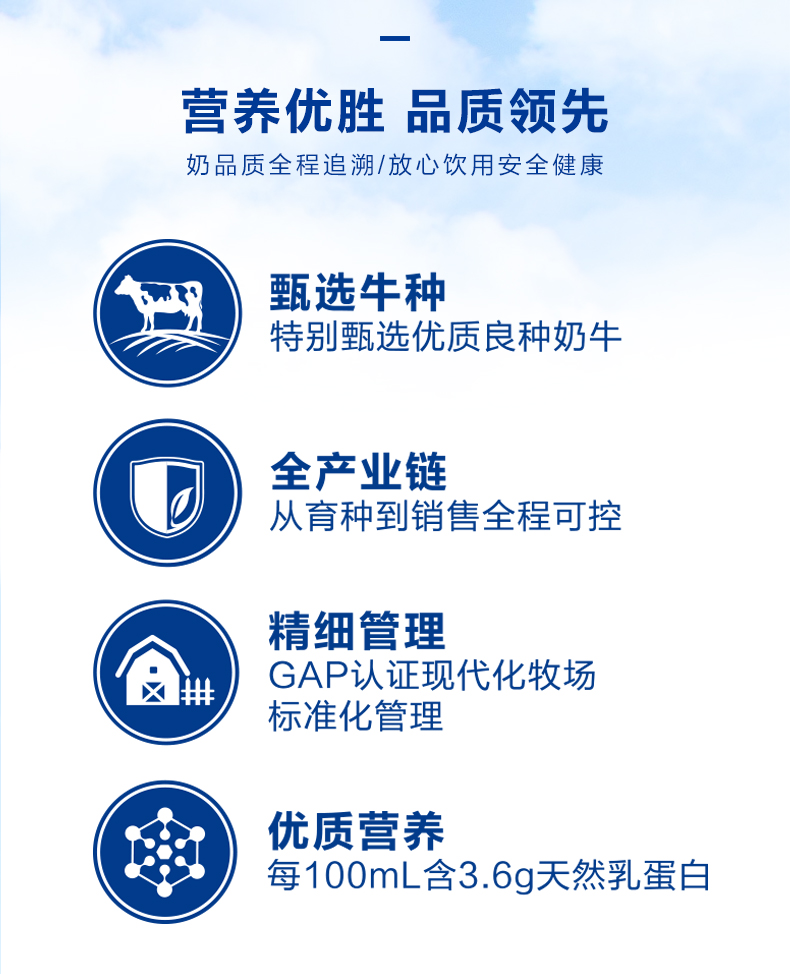 这款三元 极致全脂纯牛奶,GAP认证牧场现代标准化管理,大自然开放牧场+高品质良种奶牛,生牛乳乳脂率高,营养丰富。每100ml含天然乳蛋白3.6g(非后加工添加)、脂肪 4.4g、碳水化合物 5.0g、钠60mg、钙 110mg,营养数据上看比很多进口奶都要高了,非常适合为老人、儿童增加营养。