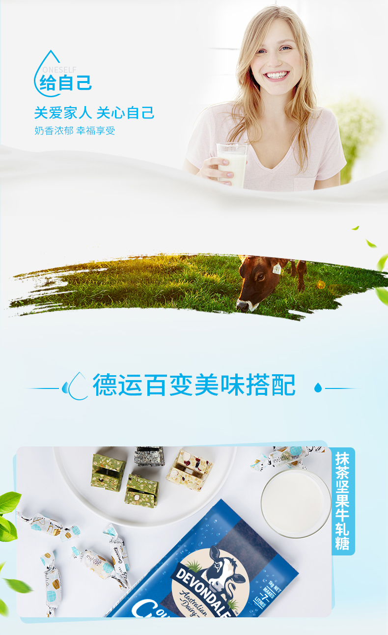 DEVONDALE创于1950年的Murray Goulburn公司「官网」,澳大利亚最大的乳制品生产商,位于维多利亚州全澳最大的产奶区,南纬37°澳大利亚得天独厚的地理环境下,其奶牛天然放牧,在加上世界领先乳品加工技术和产品管控。高品质奶制品深受世界消费者喜爱,其产品出口全球100多个国家,出口量占全球乳品贸易的8%。