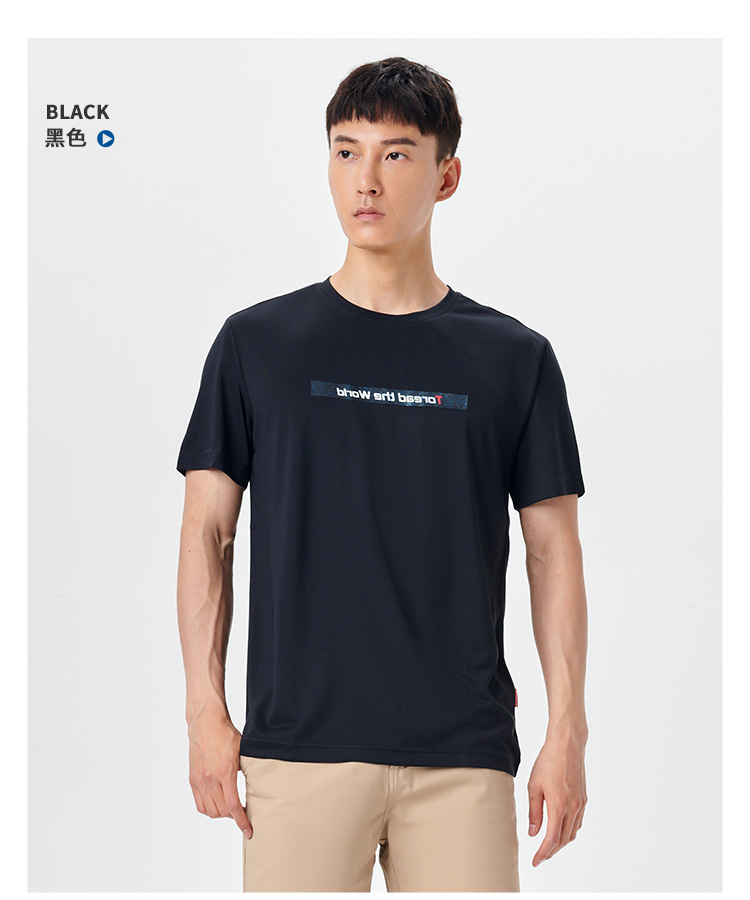 这款探路速干T恤,使用棉感平纹面料—100%聚酯纤维,摸起来手感接近纯棉,穿着更舒适。功能上吸湿排汗,速干透气,适用于夏季或运动时穿。