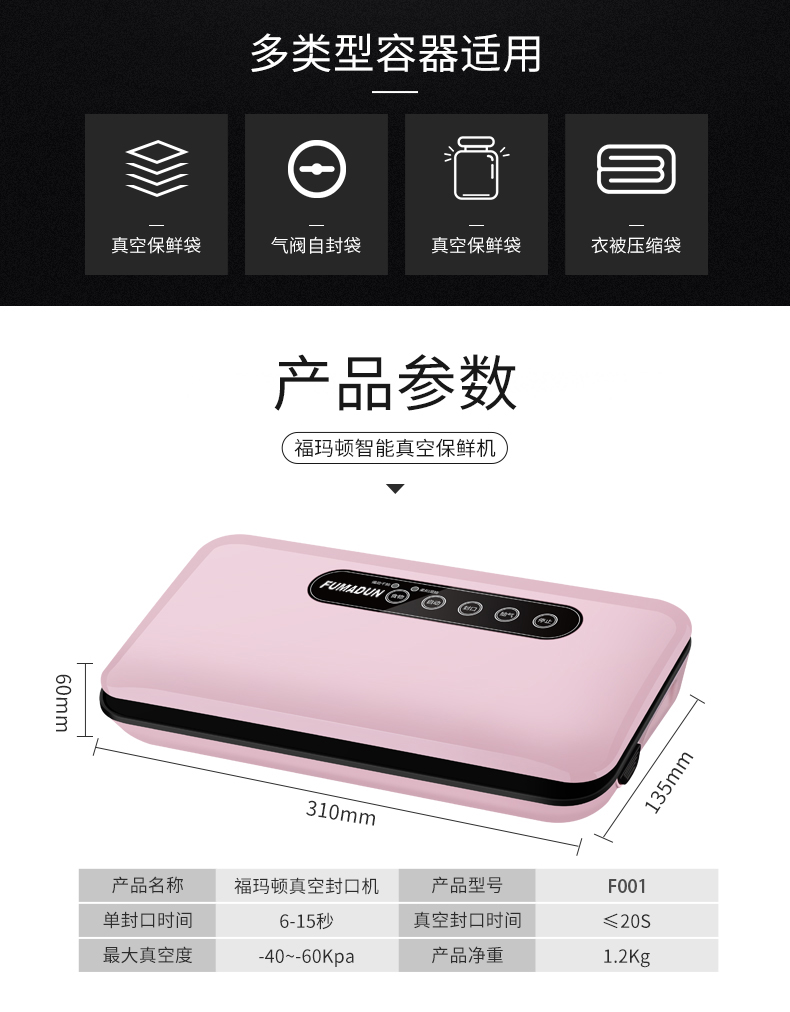 天猫福玛顿旗舰店118元,可领40元优惠券,实付78元到手,直降10元,4种颜色可选。家庭实用真空保鲜机,干湿粉软通用,人工设计按键,一键食品真空,可用于食品保鲜,防止食物串味,回潮,还可以外抽(需配备真空管),适用于各种保鲜罐、收纳袋等,智享健康新鲜生活~