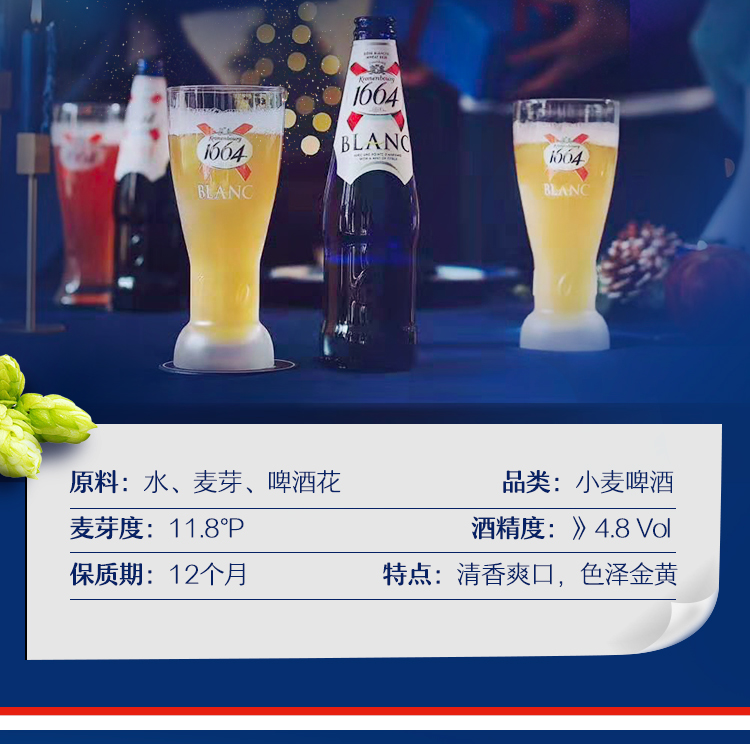 法国销售量第一的可伦堡啤酒,瓶身采用了富有法式浪漫主义的深邃蓝色,颜值超高。酒体只使用法国亚尔萨斯省的特种啤酒花Strisselspalt,泡沫细致,采用了以柑橘等水果来调味,添加芫荽和丁香,回甘大于苦涩感,色泽清纯,在3度的温度下冷藏,口味尤其顺滑。