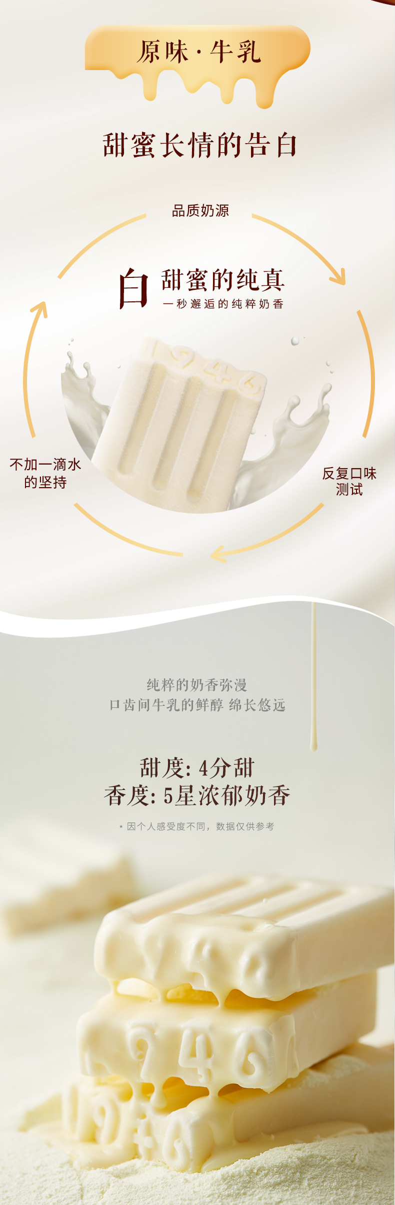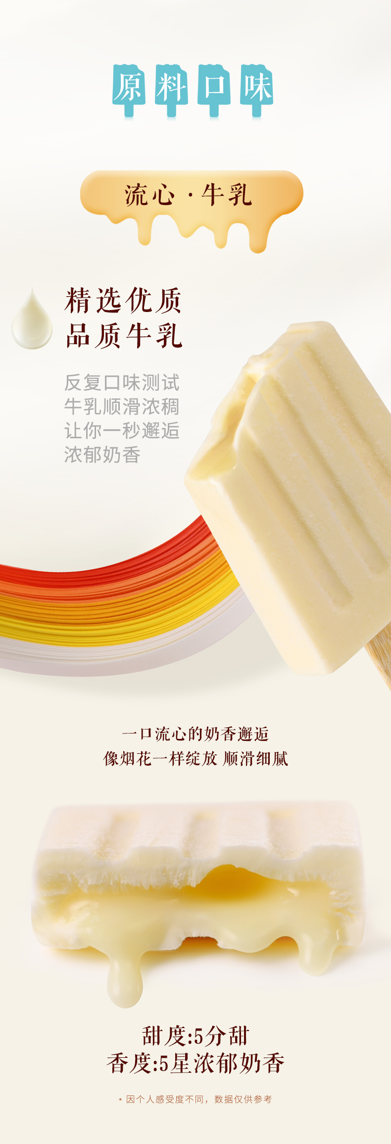 甄选优质牛乳采用低温膜分离技术,有效保留蛋白分子重塑牛乳,融入超滤、纳滤之后的高端乳基蛋白原料,淡淡的牛奶香中富含丰富的营养物质。直灌技术加持,高密度不充空气,还原原料初始状态,雪糕口感厚实满满的咀嚼感。