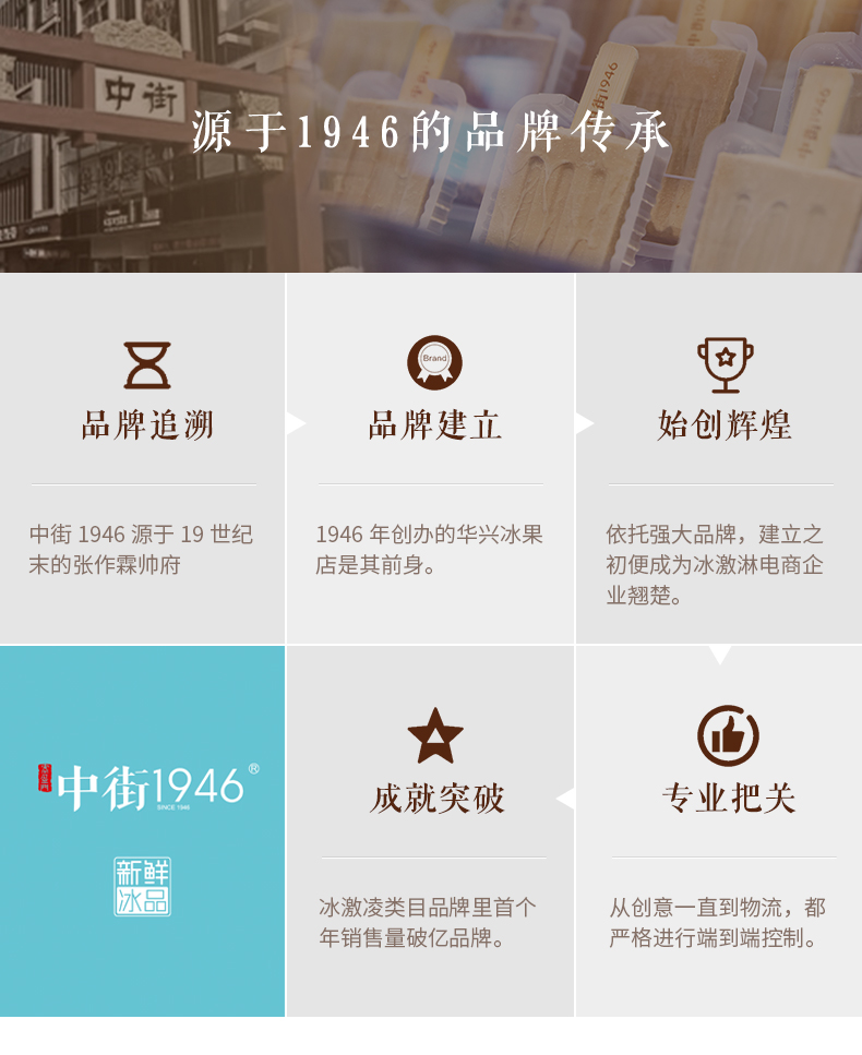 中街1946冰激凌,是“沈阳老字号”和“辽宁老字号”,并跻于中国十大冷饮品牌前列及东北第一冷饮品牌。2006年沈阳世界园艺博览会”唯一指定冷饮,2009年被列为非物质文化遗产保护项目,2013年被列为中国第十二届全运会首选冷饮产品。