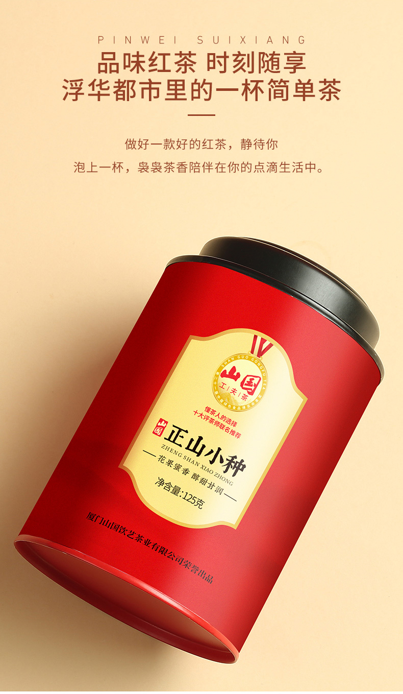正山小种,是世界上最早的红茶,亦称红茶鼻祖,至今已经有400多年的历史,外形条索肥实,色泽乌润,泡水后汤色红浓,香气高长带松烟香,滋味醇厚,带有桂圆汤味,加入牛奶茶香味不减,形成糖浆状奶茶,液色更为绚丽。