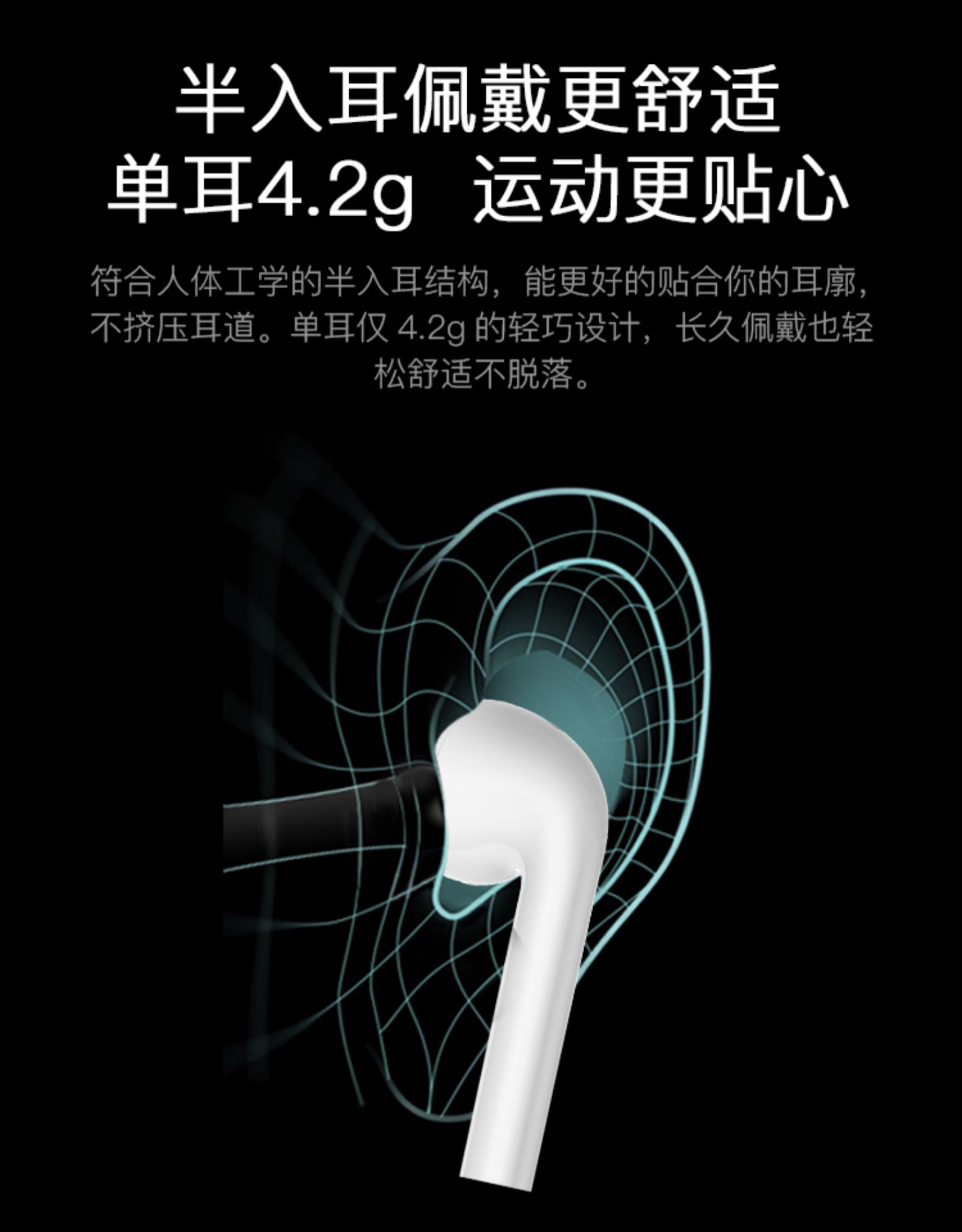 符合人体工学的半入耳结构,能更好的贴合你的耳廓、不挤压耳道。单耳仅4.29的轻巧设计,长久佩戴也轻松舒适不脱落。24小时持久续航,强大电力储备。收纳盒也是充电仓,不仅保护和收纳耳机,还可额外为耳机充电5次。IPX5级深度防水,无惧汗水畅听无阻。Type-C充电插口,盲插更方便。