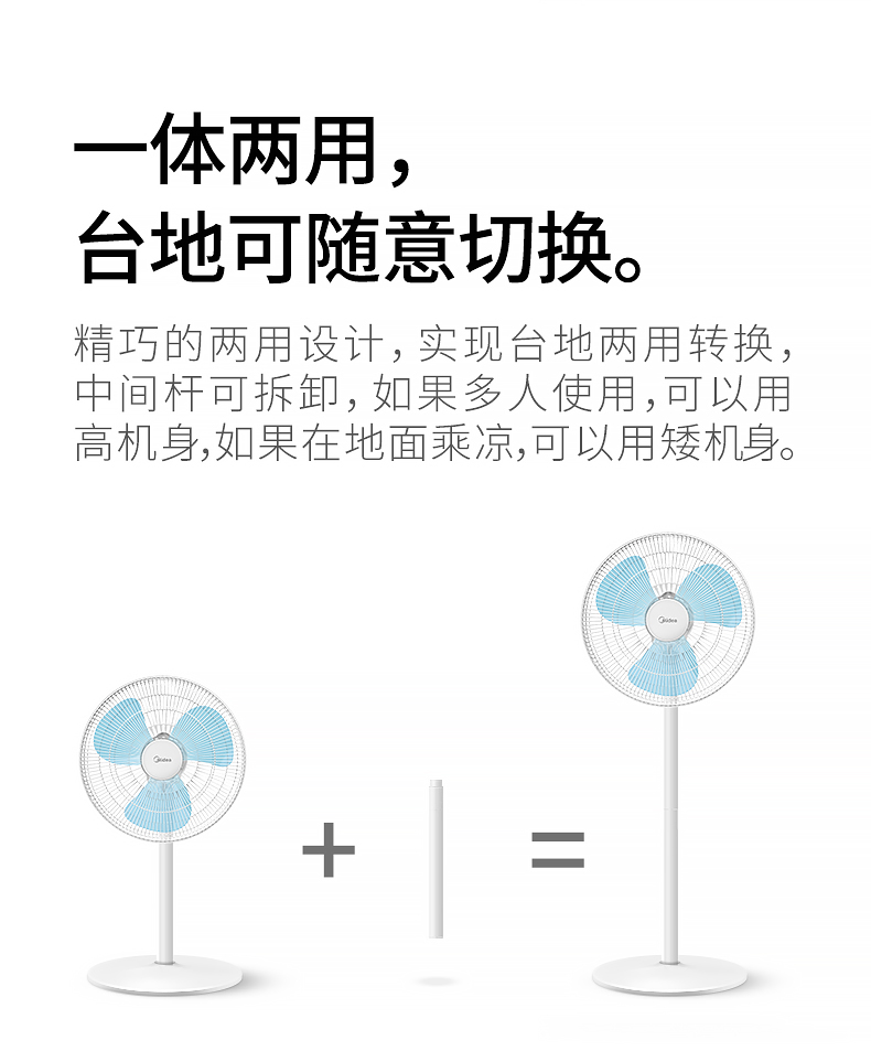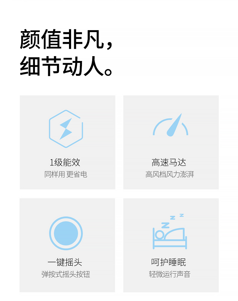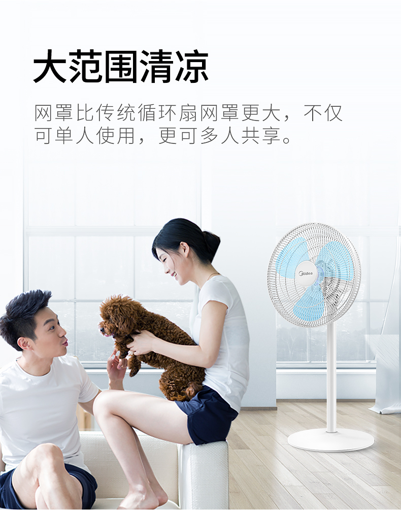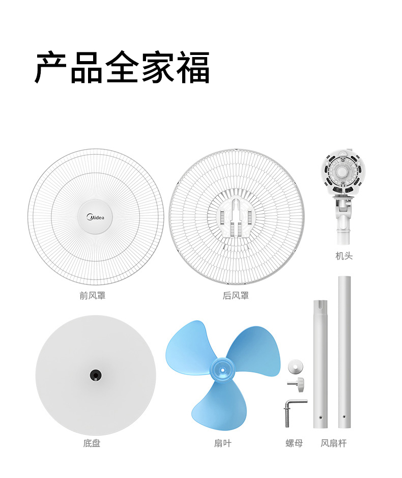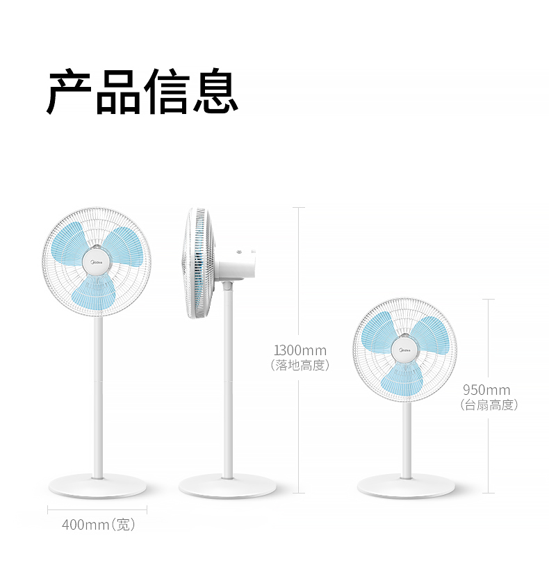 这款美的SAB40A 电风扇,采用40cm牛角三叶风扇,最大风量可达56m³/min,电机功率50W,极简设计立杆,可高低调节,电机尾部有3档风速可控制,摆头角度85°,还可手动28°上下调节。一级能效,适合15-25㎡客厅。