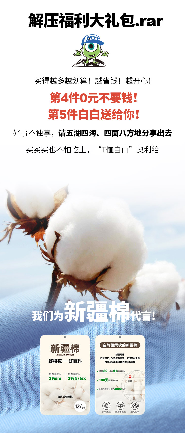 超多颜色款式任你选!还有迪士尼经典IP印花款,妖精的口袋21色IP联名T恤!精选新疆棉,纯棉柔软透气,穿着又舒服!日常休闲宽松百搭,超个性抢眼!