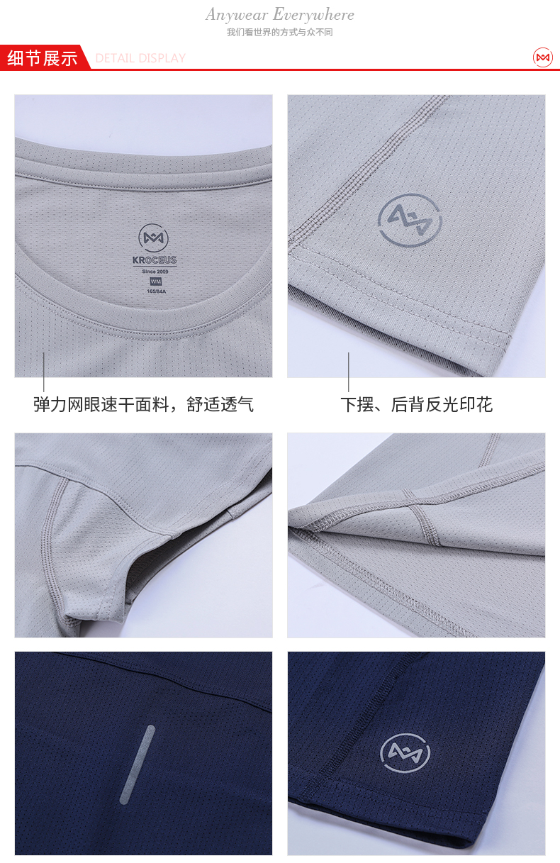 在款式和细节上,修身版型,后脖颈是无感标签,不会刺激到脖子,同时后领还有本布防变形条,耐洗耐穿。拼缝处使用美罗针工艺,表面更光洁无凸起摩擦肌肤,后背还有反光印花,保障夜间出行。