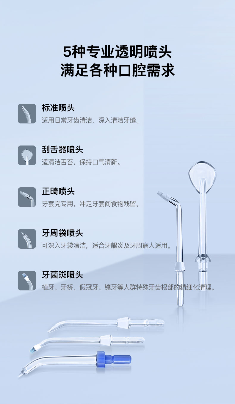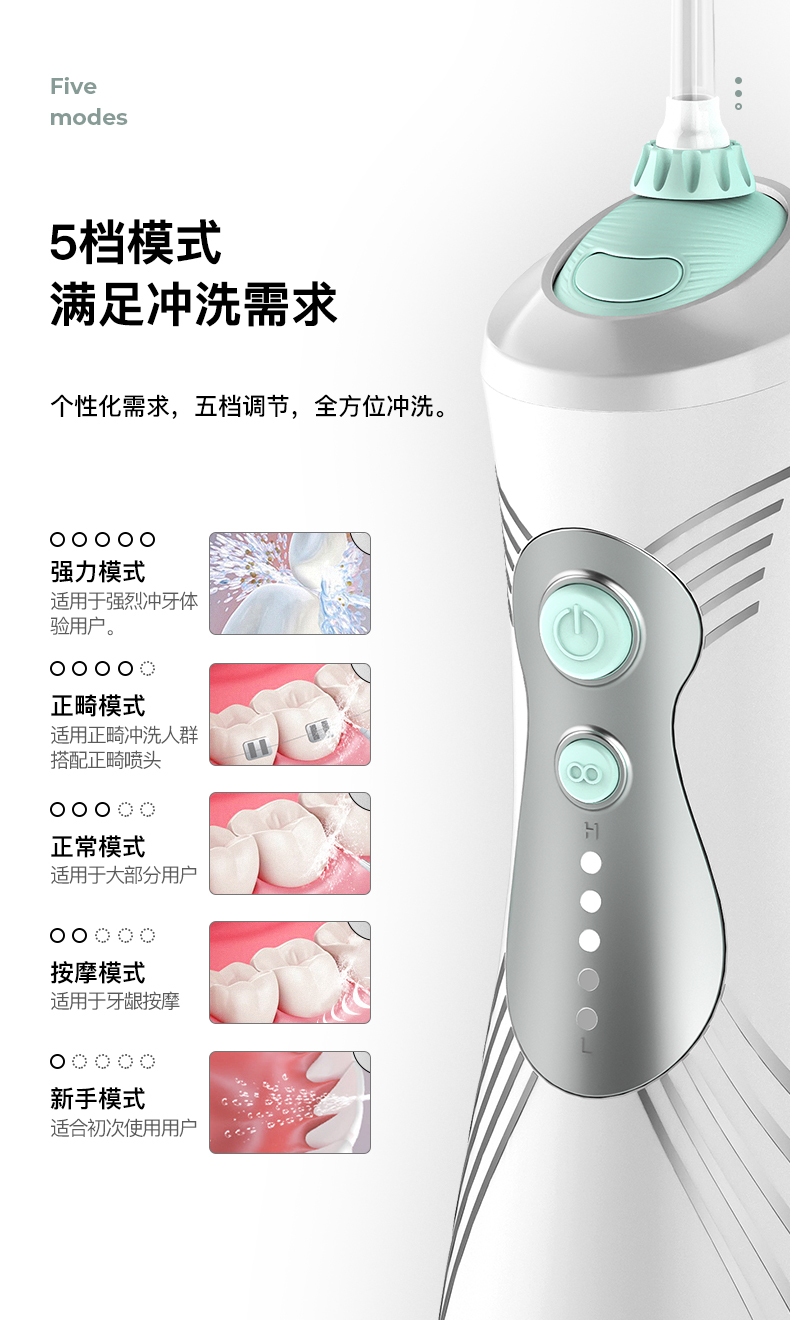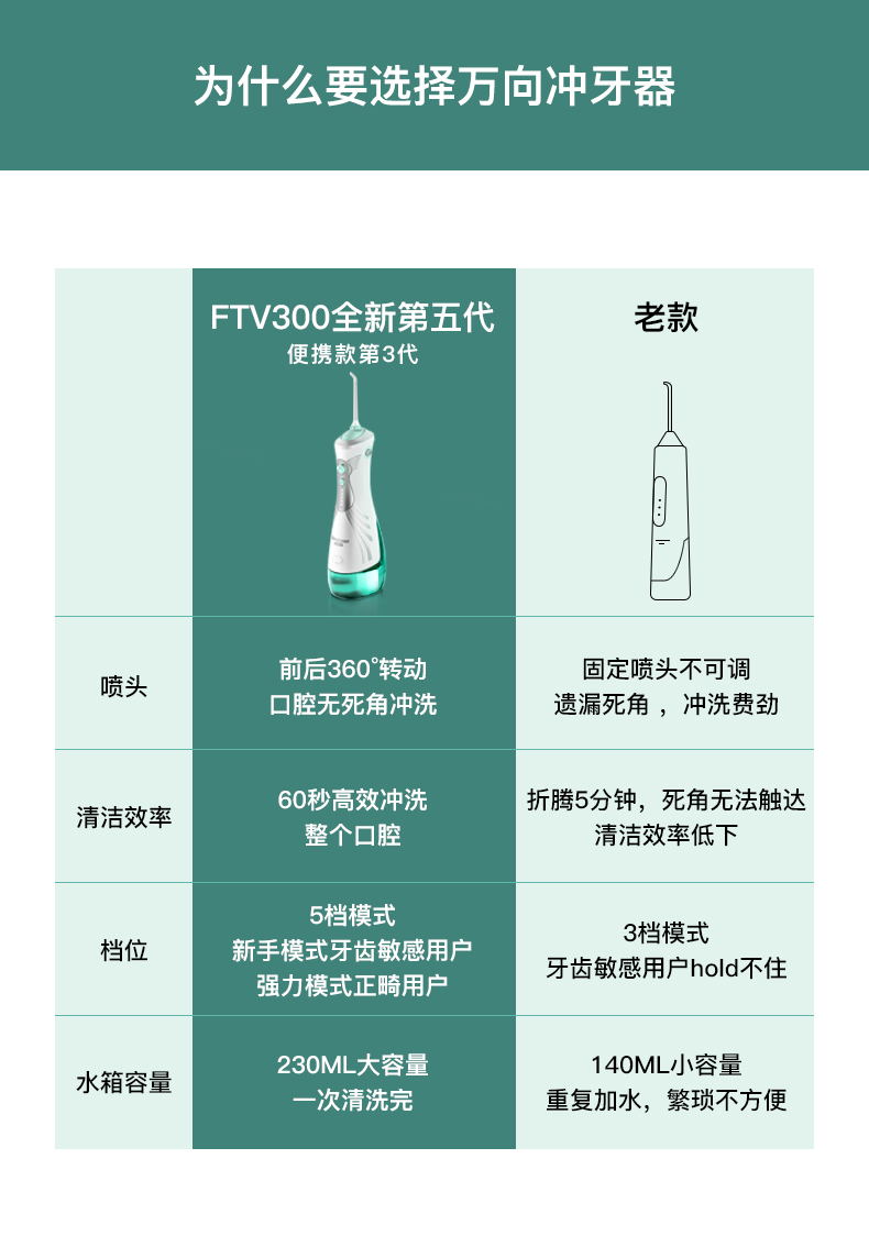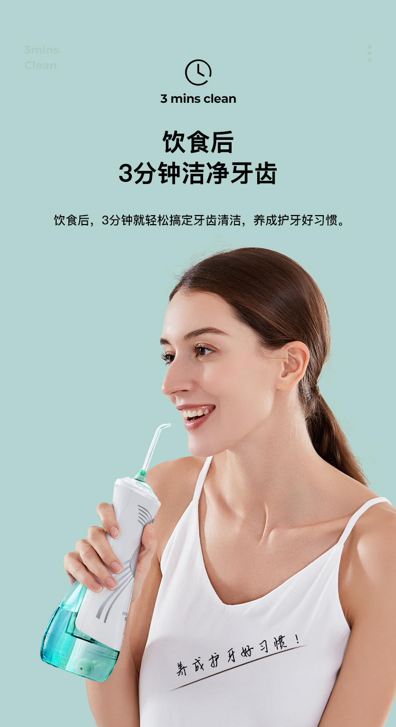 这款斐驰的冲牙器升级到现在已经是第5代,同时也是便携款的第3代,对比上代主要是这款斐驰的冲牙器升级到现在已经是第5代,同时也是便携款的第3代,对比上代主要是刷头位置和档位马达有了升级。