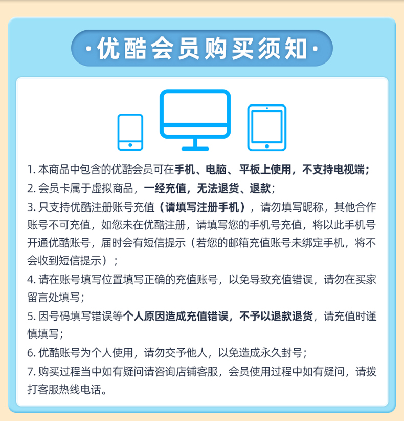 注:非电视会员,可考虑用手机投屏到电视观看,只是会麻烦些,也占用手机。注:充值时,只能填写手机号,充值错误不予退换。