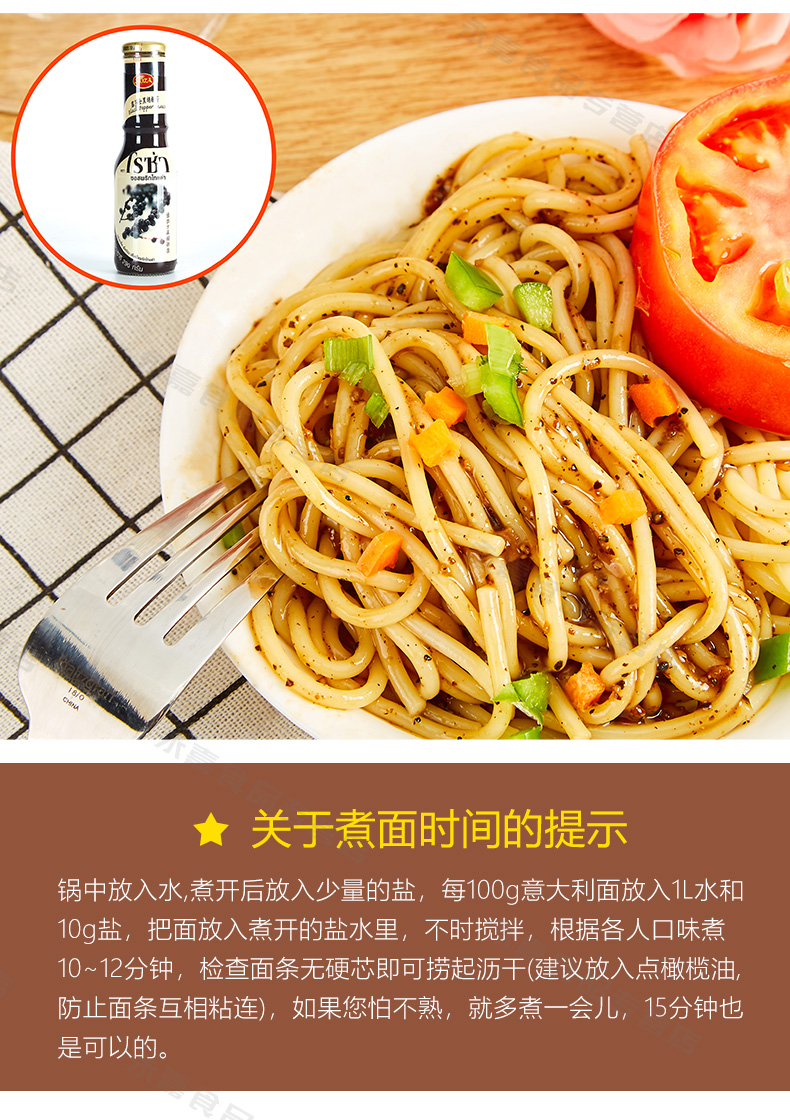 制作方面也很简单方便,无需复杂配方,只需煮熟搭配各种口味的意面酱,点缀一些水果蔬菜,一盘完美的意大利面便制作完成了。