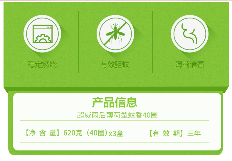 这款超威 加大老式驱蚊香,是超市同款,加大加量,采用进口优质原药,添加薄荷植物精油,有效驱除蚊虫,对身体无害安全,抗折力好,分拆不易断,优质的碳粉香坯能稳定燃烧,单圈可燃烧8~9小时。