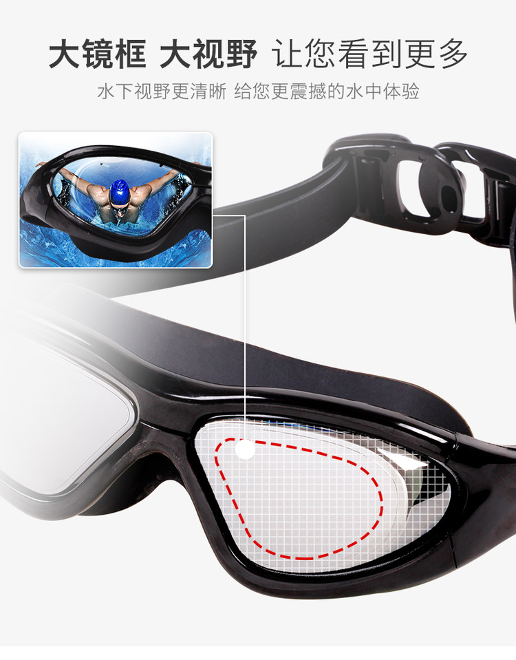 高清大镜框,防水又防雾,戴上水下视野更清晰,感受震撼水中体验~活动男女款都有,让你游泳更快乐领券链接点此