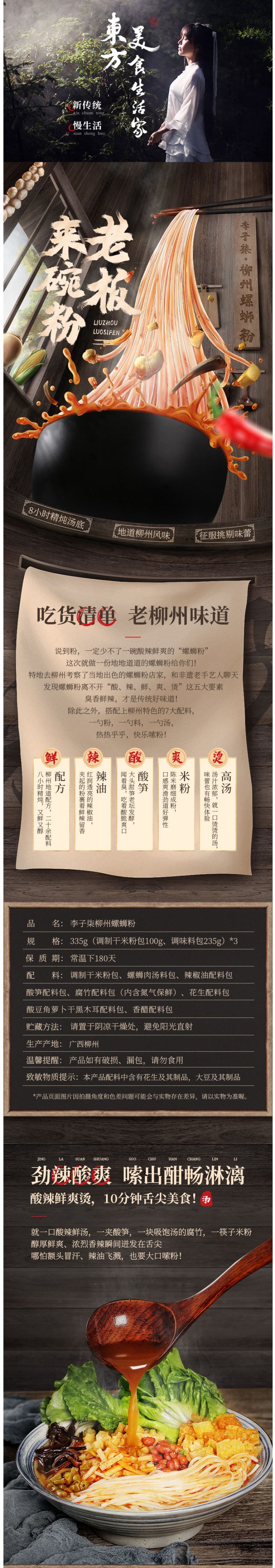 地道柳州风味。规格335g*3袋。李子柒家也出螺蛳粉啦,知名品牌,用料讲究,评测味道还是不错的,价格也是螺蛳粉的正常价,感兴趣的可以尝试一下。