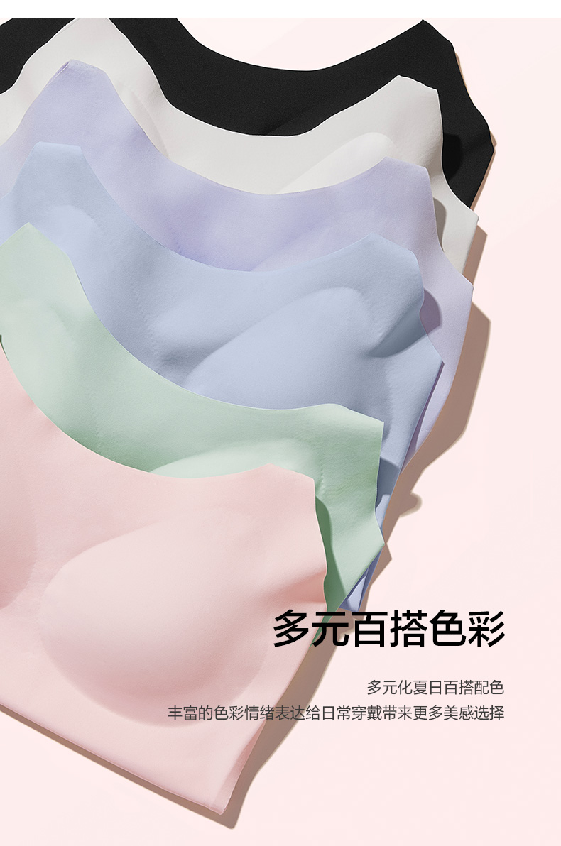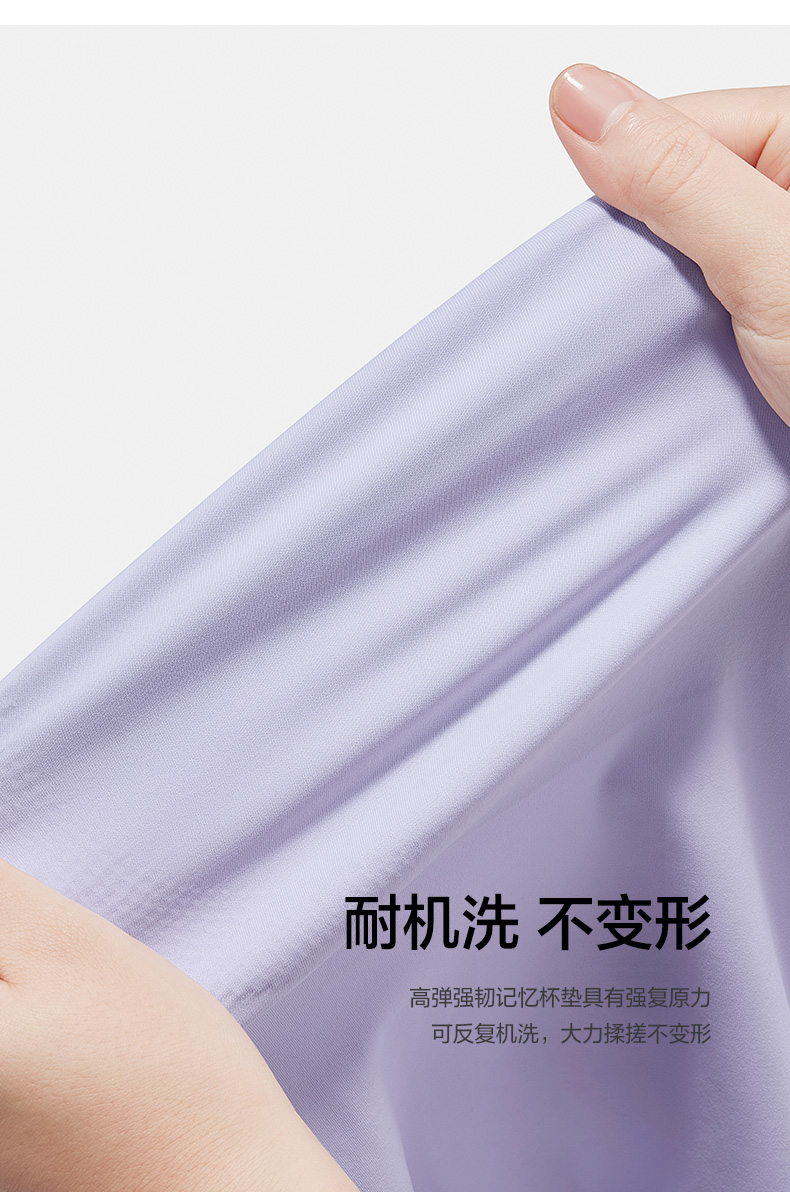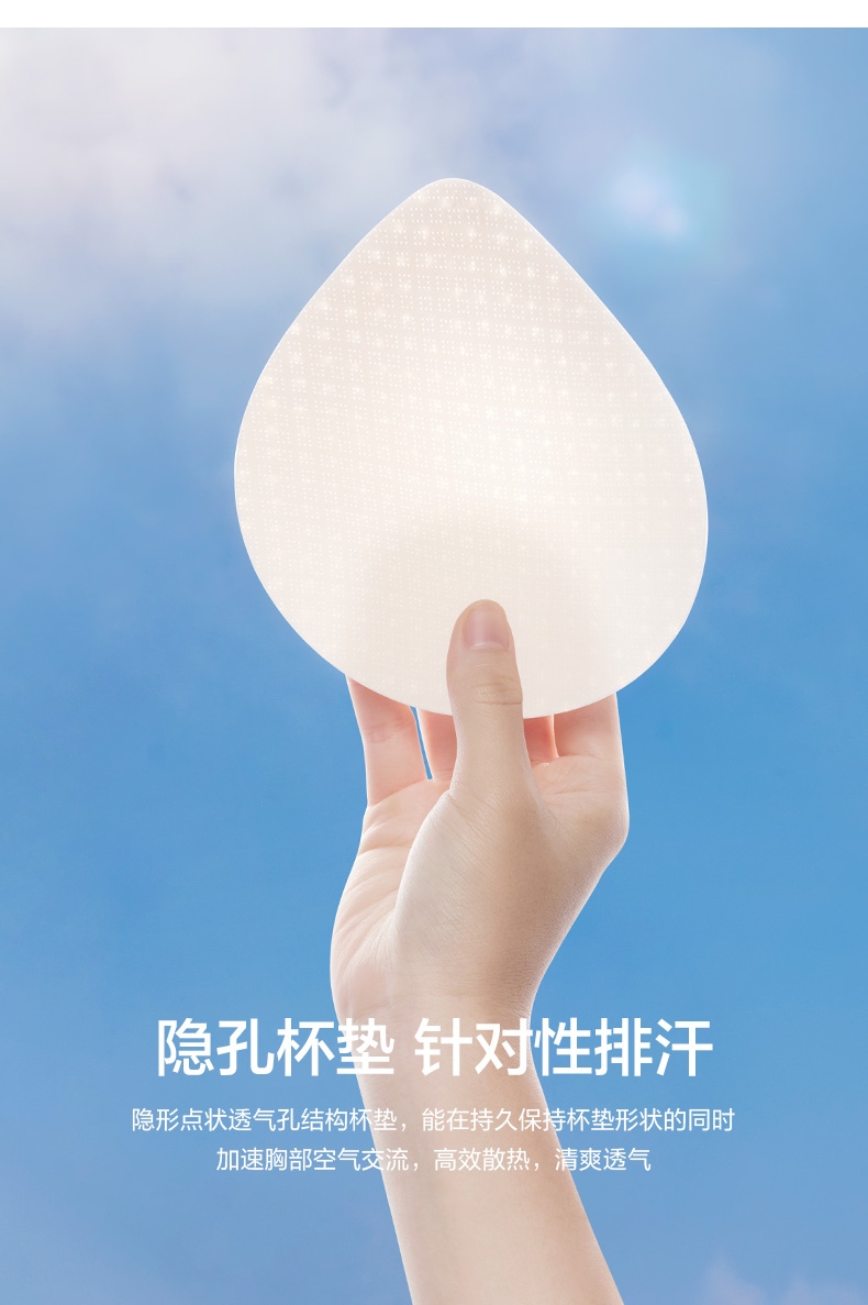细节上:整体无痕设计,面料高弹,舒适贴合防走光;立体斜角水滴杯垫,高弹强韧具有超强复原力,包容多种胸型,高契合度无隙包裹,稳固承托,杯垫点状透气孔结构,可以在持久保持杯垫形状同时加速胸部空气流通,高效散热,清爽透气。