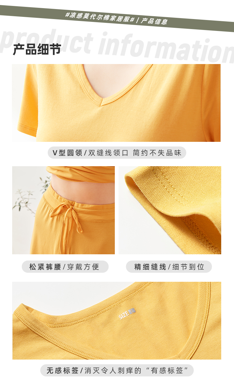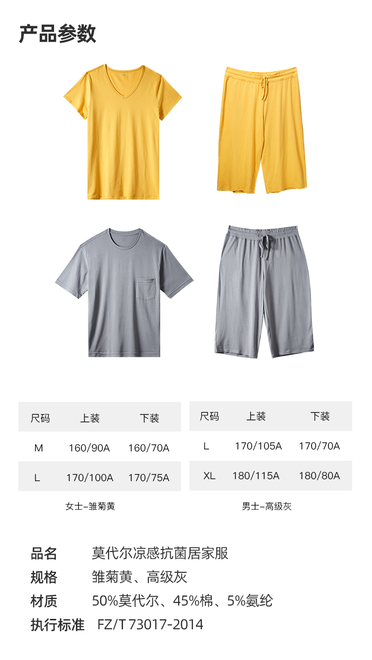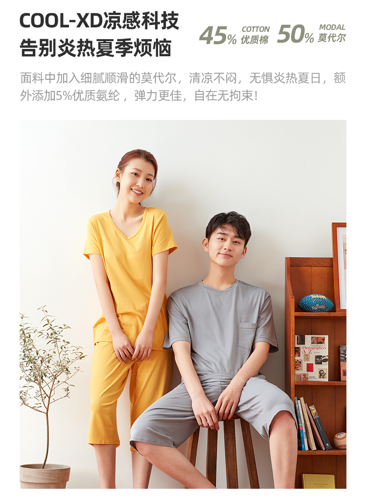 淘宝心选出品的凉感莫代尔棉家居服,阿里官方直营的高品质,面料为45%棉+50%莫代尔纤维,上身细腻顺滑,清凉不闷热,还额外添加了5%的优质氨纶,弹力更佳,经过COOL-XD科技处理,上身清凉舒适。