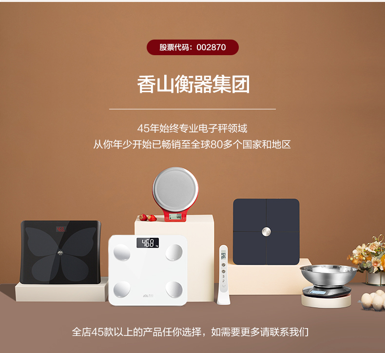 天猫香山旗舰店,电池款69元、USB充电款79元,可领45元优惠券,电池款实付24元到手,香山是国内做秤的大品牌,官方店出品,质量保真。