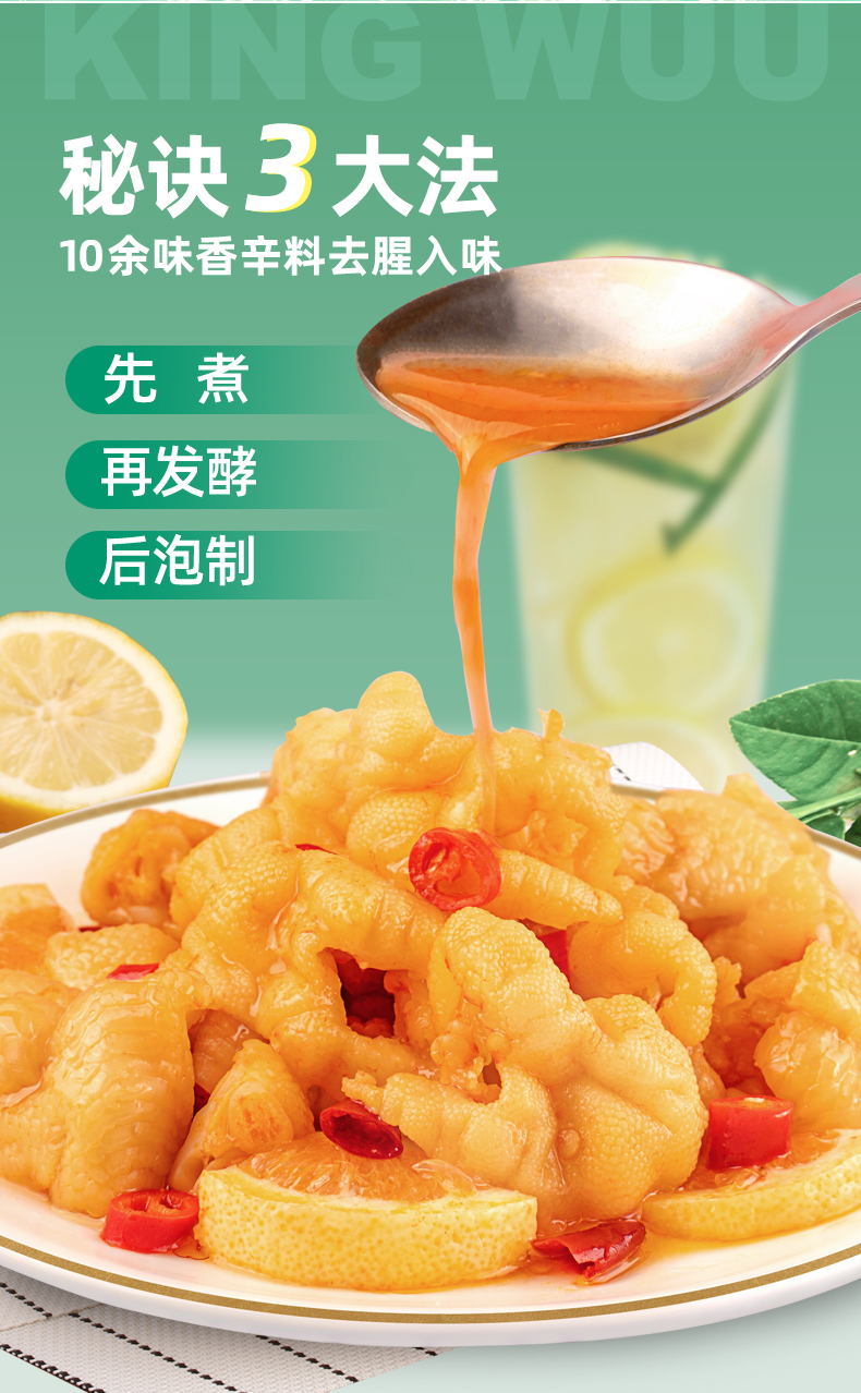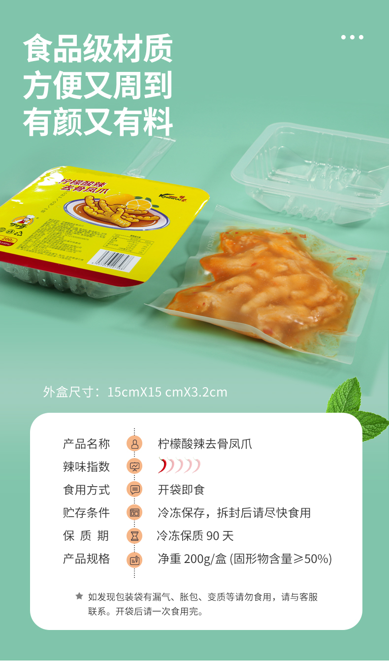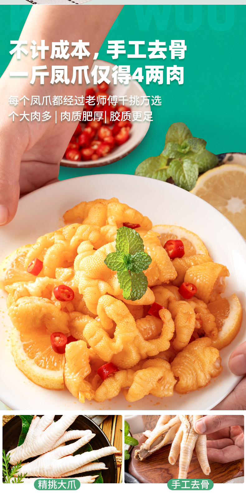 天猫kingwuu旗舰店28.8元,可领5元优惠券,叠加店铺满减,拍5件实付53.6元到手,共到手200g*5盒,固形物含量≥50%。无骨的爽,每一只凤爪精心剔骨,柔韧弹牙,酸辣过瘾,口口爽爆味蕾!最重要的是没有骨头,享受满口是肉的感觉,每一口都是舌尖上的享受!