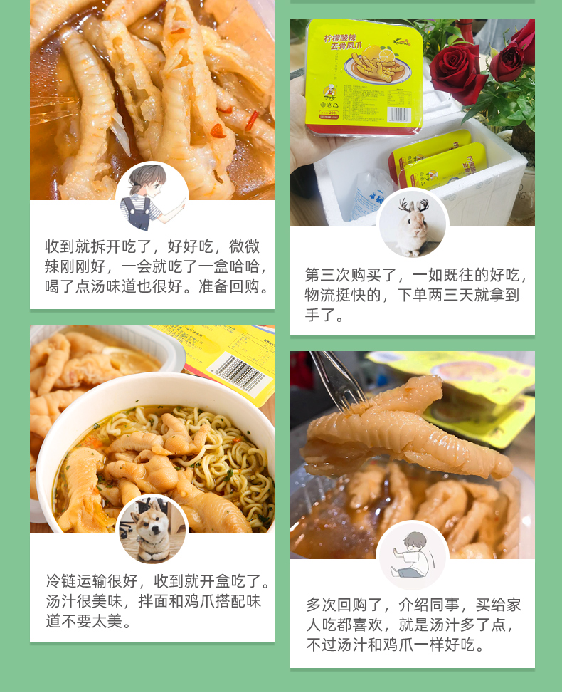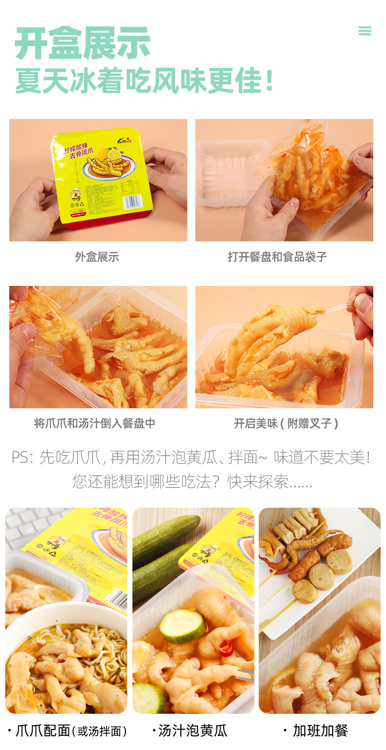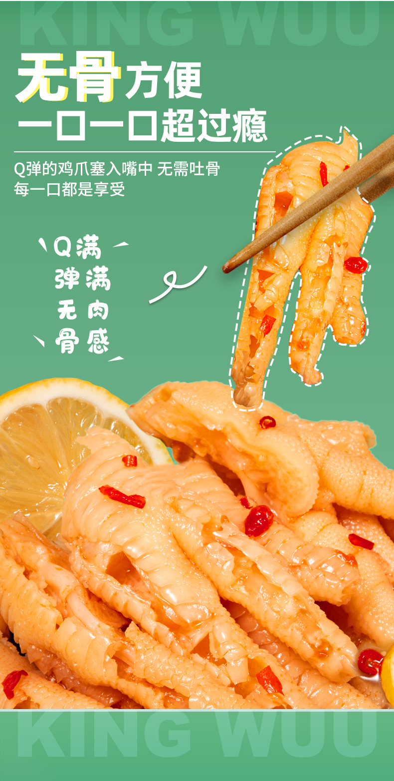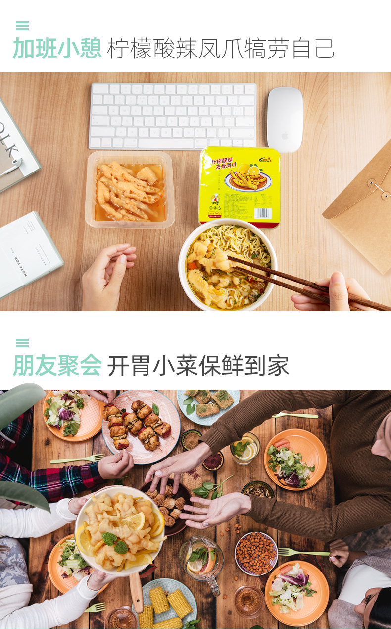 天猫kingwuu旗舰店28.8元,可领5元优惠券,叠加店铺满减,拍5件实付53.6元到手,共到手200g*5盒,固形物含量≥50%。无骨的爽,每一只凤爪精心剔骨,柔韧弹牙,酸辣过瘾,口口爽爆味蕾!最重要的是没有骨头,享受满口是肉的感觉,每一口都是舌尖上的享受!