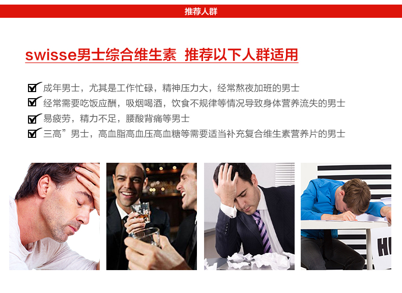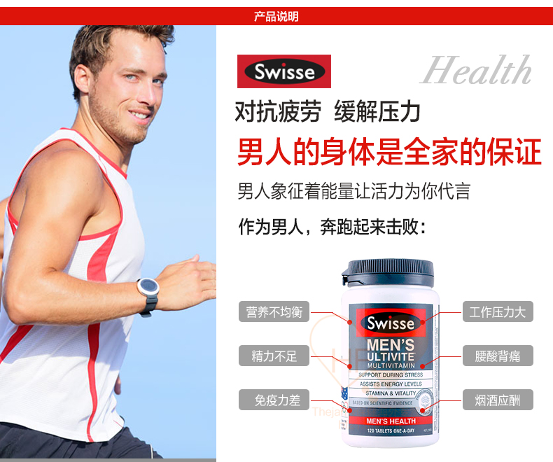 这款Swiss维生素片,专为男士定制,富含高达53种维生素,采用独特配方,营养均衡更丰富,不含防腐剂,食用安全健康。每日维生素,提升身体能量和耐力,增强免疫力,减压抗疲劳,为男人身体提供更好的能量支持。