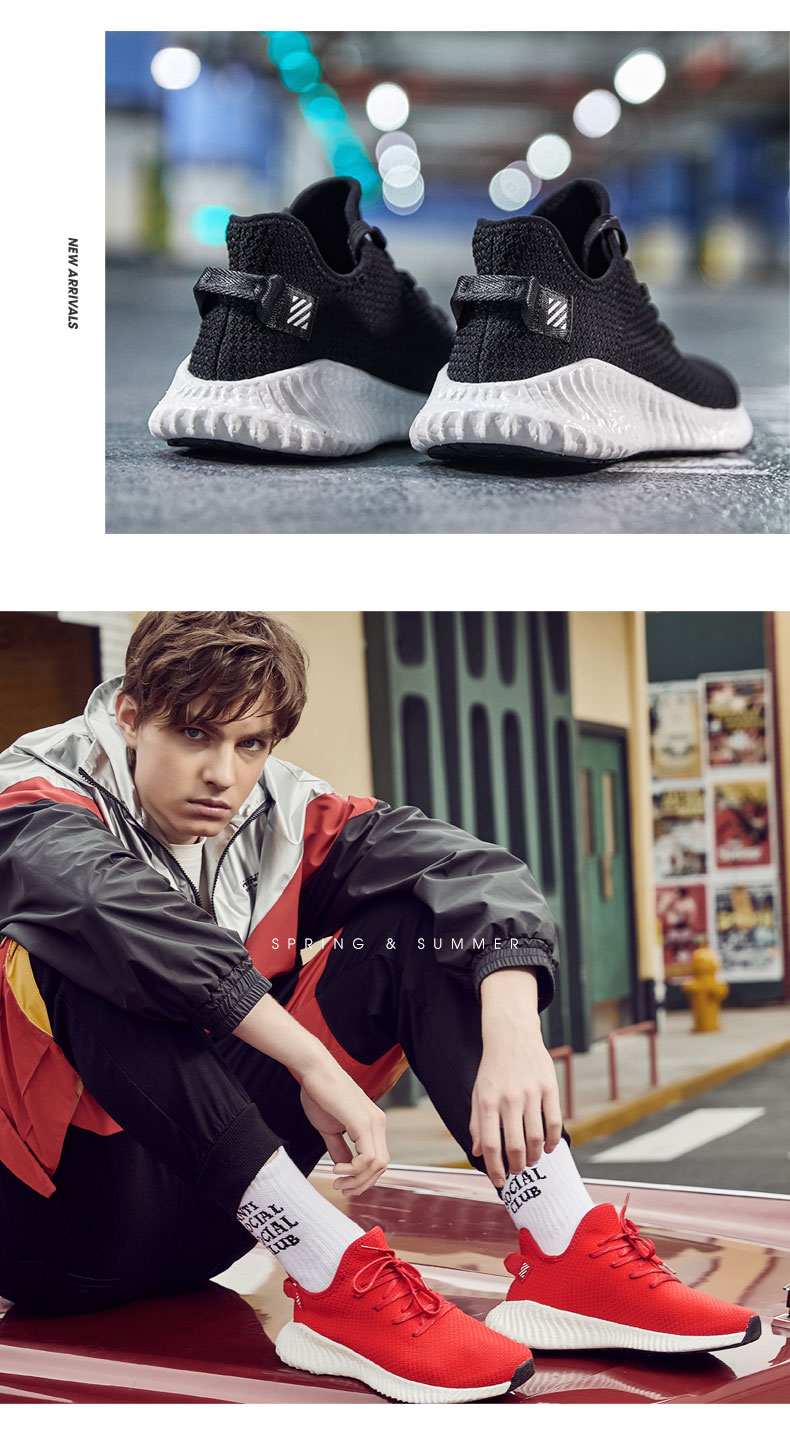 弹性飞织呼吸网2.0鞋面,透气不捂脚。脚感舒适轻便柔软,轮胎时尚花纹防滑耐磨,鞋底线条优美,潮流大屁股后跟,幅度立体感强。