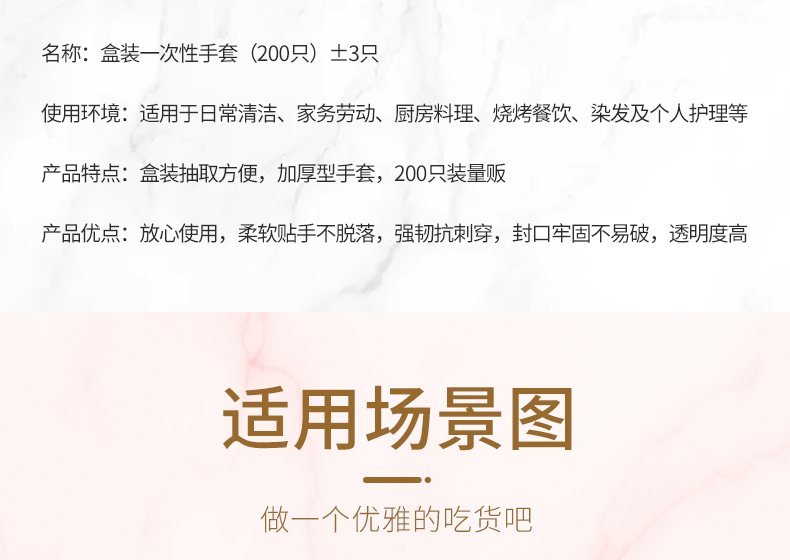 天猫zoikou象扣旗舰店11.9元,可领5元优惠券,实付6.9元到手,食品级PE,密封材质,防止交叉感染,防止油污,无渗漏,双面凸点设计,增大摩擦不易滑落,抽取式设计,方便卫生,适用于日常清洁、家务劳动、厨房料理、烧烤餐饮、染发及个人护理等。