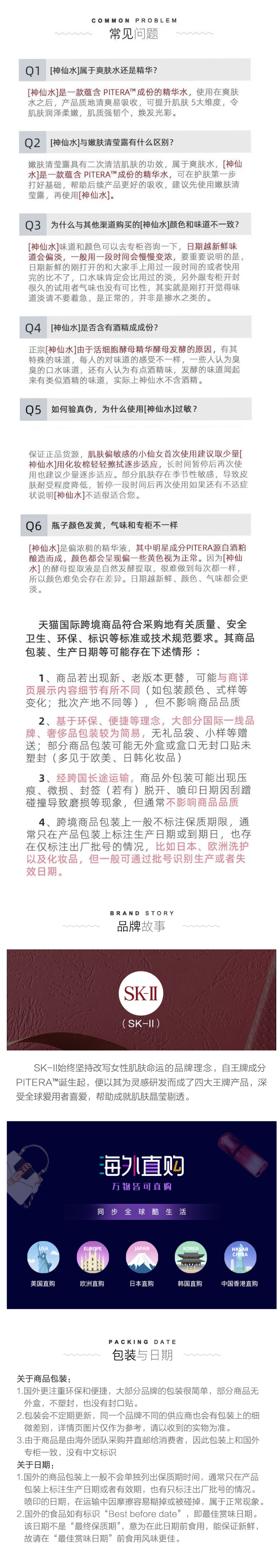 SK-II神仙水含有高达90%以上的富含多种营养成分的PiteraTM酵母精华。每天为肌肤提供充足营养并调理肌肤,深层保湿,平衡肌肤的pH值,塑造润泽光洁的肌肤本色。 PiteraTM提升五大美肌维度,让肌肤升华至晶莹剔透: