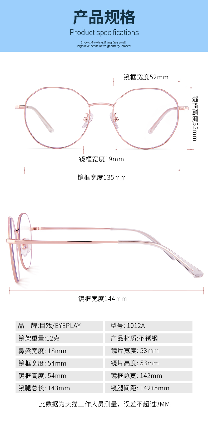 这款宝岛eyeplay防蓝光平光镜,镜框采用12g超轻不锈钢制成,佩戴舒适无压力。多边形复古镜框,戴上后很显气质。