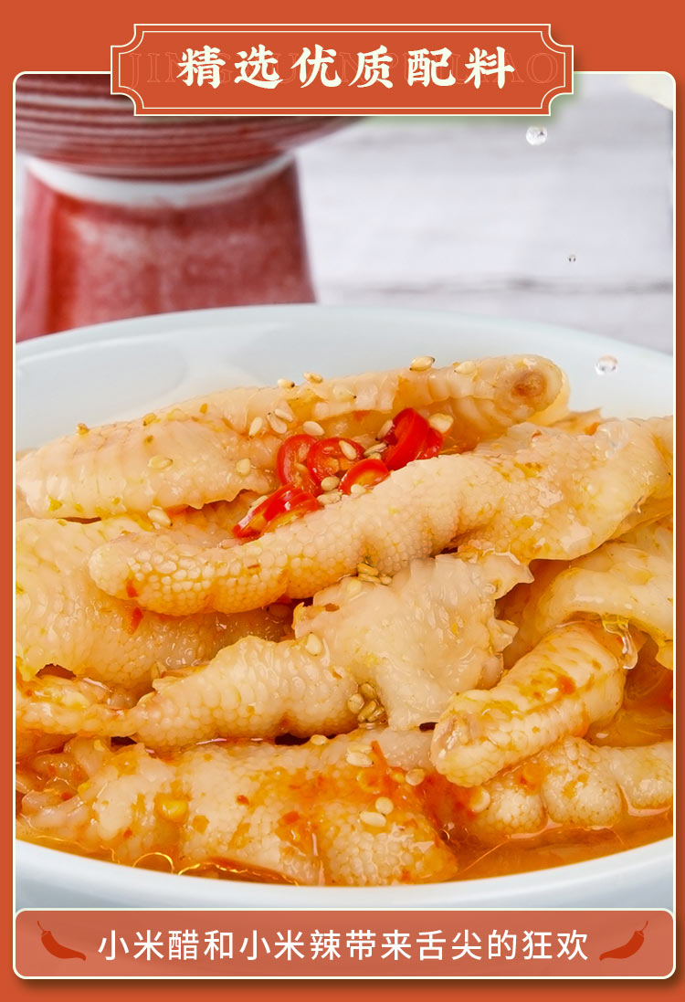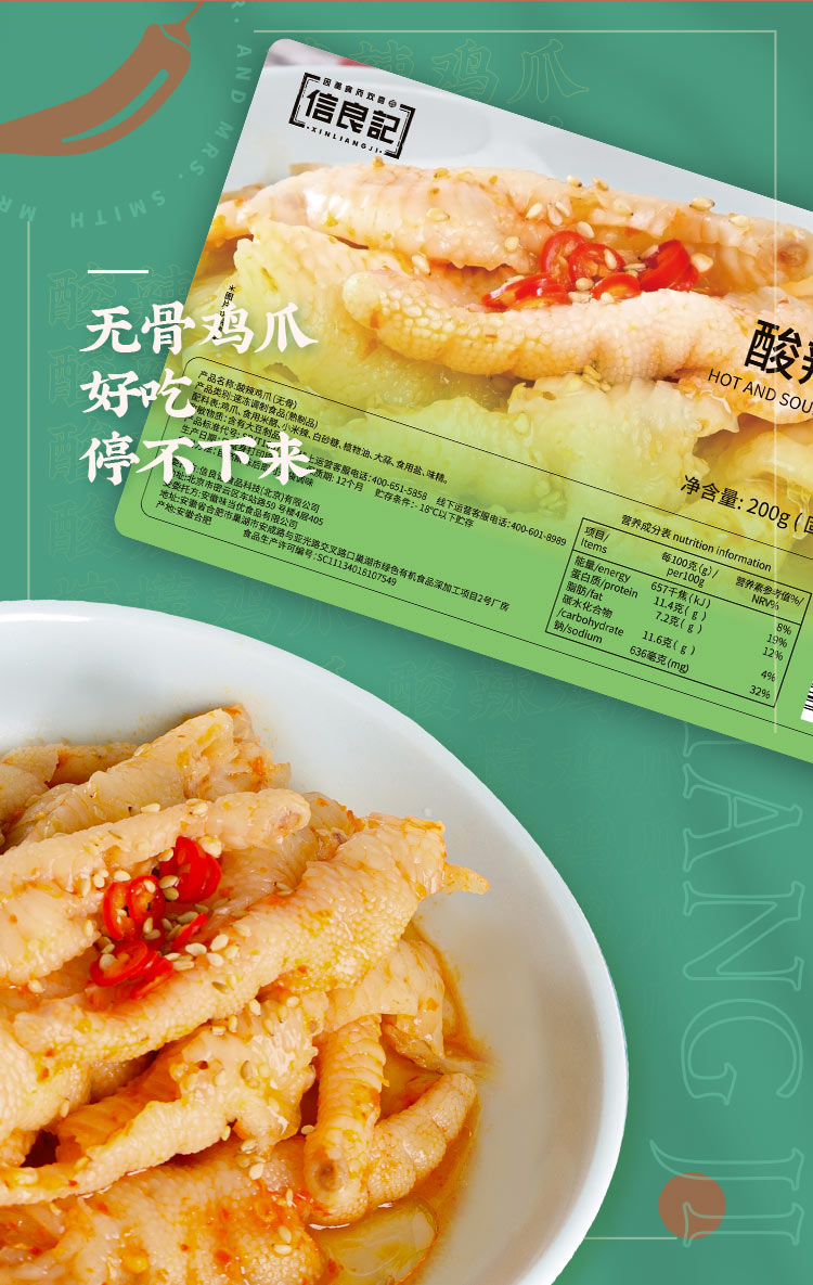 天猫信良记旗舰店59元,可领80元优惠券,叠加店铺满减,拍4件实付39.5元到手,单件规格200g,固形物含量≥50%。无骨的爽,每一只凤爪精心剔骨,柔韧弹牙,酸辣过瘾,口口爽爆味蕾!最重要的是没有骨头,享受满口是肉的感觉,每一口都是舌尖上的享受!