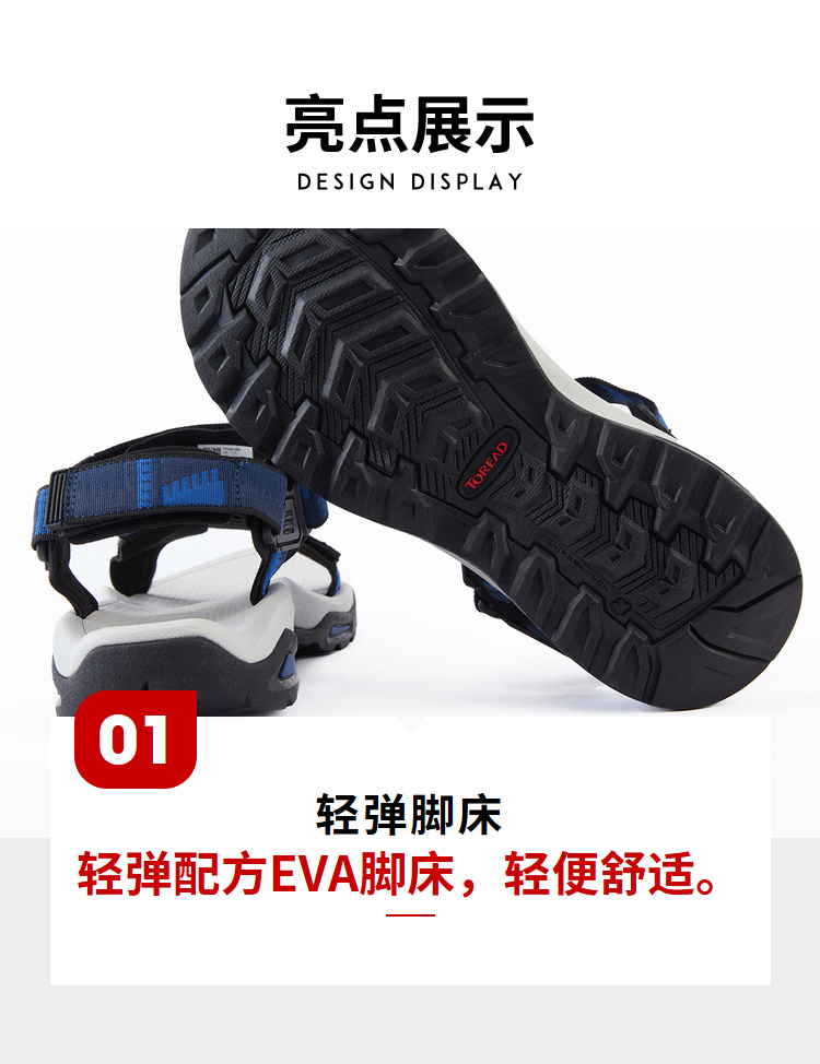 这款探路者 20款 男轻便沙滩凉鞋,鞋面用简洁的系带结合三角环扣制成,系带是速干尼龙材质的,非常耐磨,即使是在潮湿后也能迅速回干。