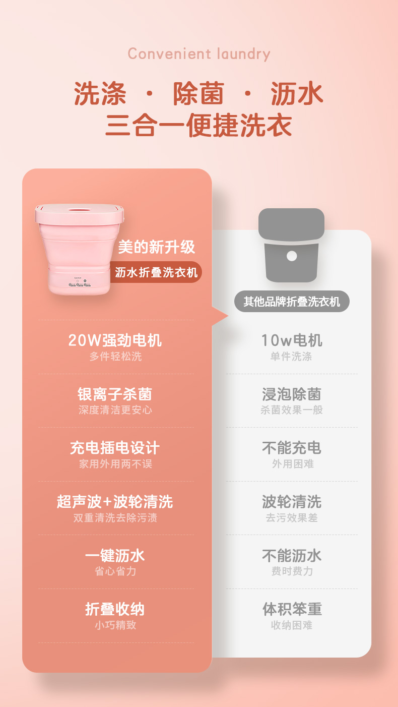 天猫美的夕月专卖店,7月31-8月2日天猫 服饰新风尚,¥329元 活动价,-5元优惠券,-满300减30元 电竞节购物券,=294元 到手价,第2款此价,下单赠送沥水篮,晒单还加赠20元红包。可折叠,收起之后仅有10cm厚,更加方便储存。此外外还有银离子抗菌款可选,清洁起来更加彻底。可以用来清洗孩子的内衣裤,平常用的毛巾等小件物品,节约时间节约水,同时避免共用一个洗衣机带来的交叉感染。