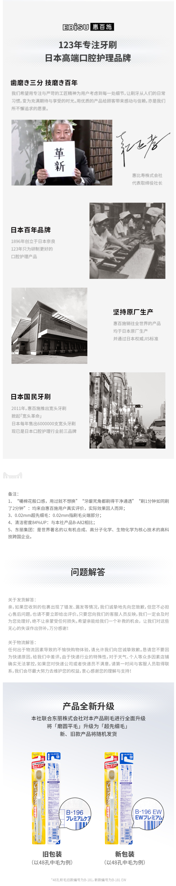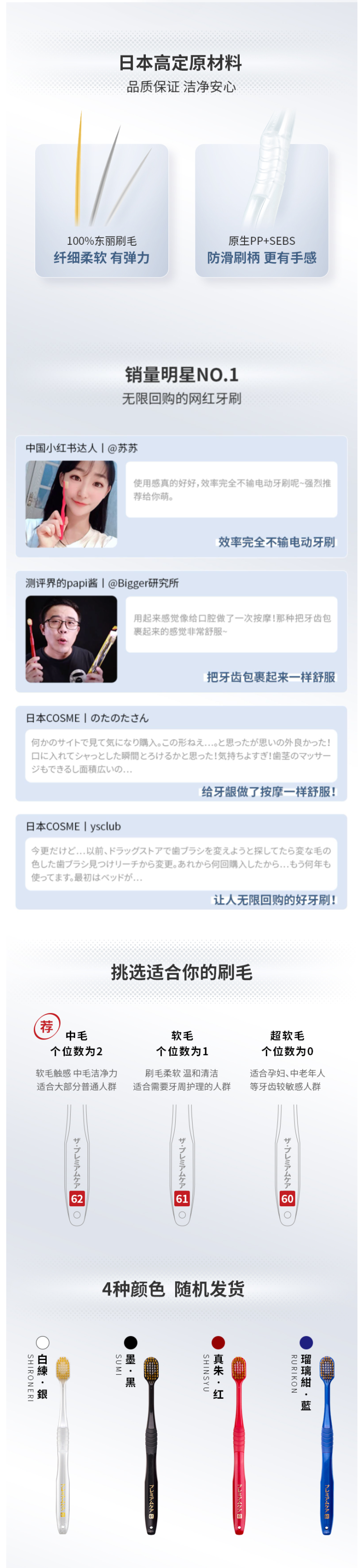 这款牙刷一直被网上评论为最好用的牙刷,也是去日本代购的爆款之一。惠百施是日本一个只关注与刷牙的百年企业,最有名的产品就是牙刷和刮舌器,有一种100多年只为做好牙刷的工匠精神