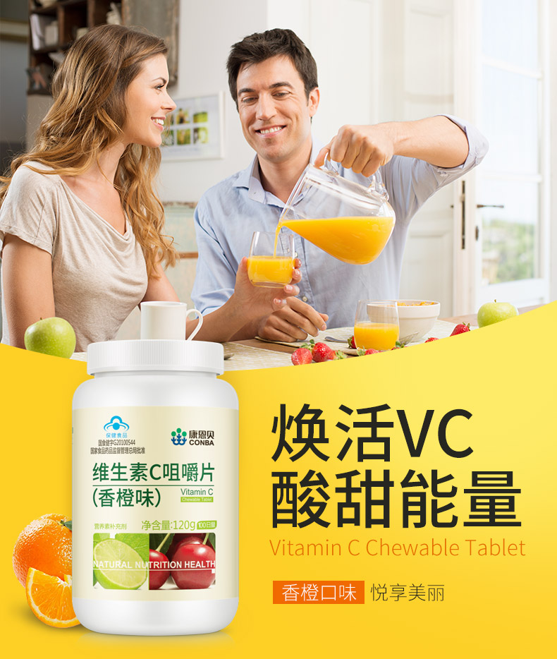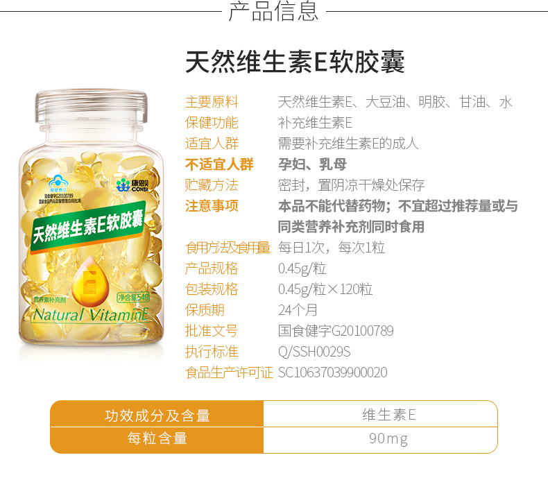 这款康恩贝拥有国家颁布的蓝帽子认证,可在国家食品药品监督管理局查询到。维生素C咀嚼片每粒含维生素C 213mg、维生素E软胶囊每粒含维生素E 90mg,两者共同服用,满足身体所需,同时搭配好吸收。