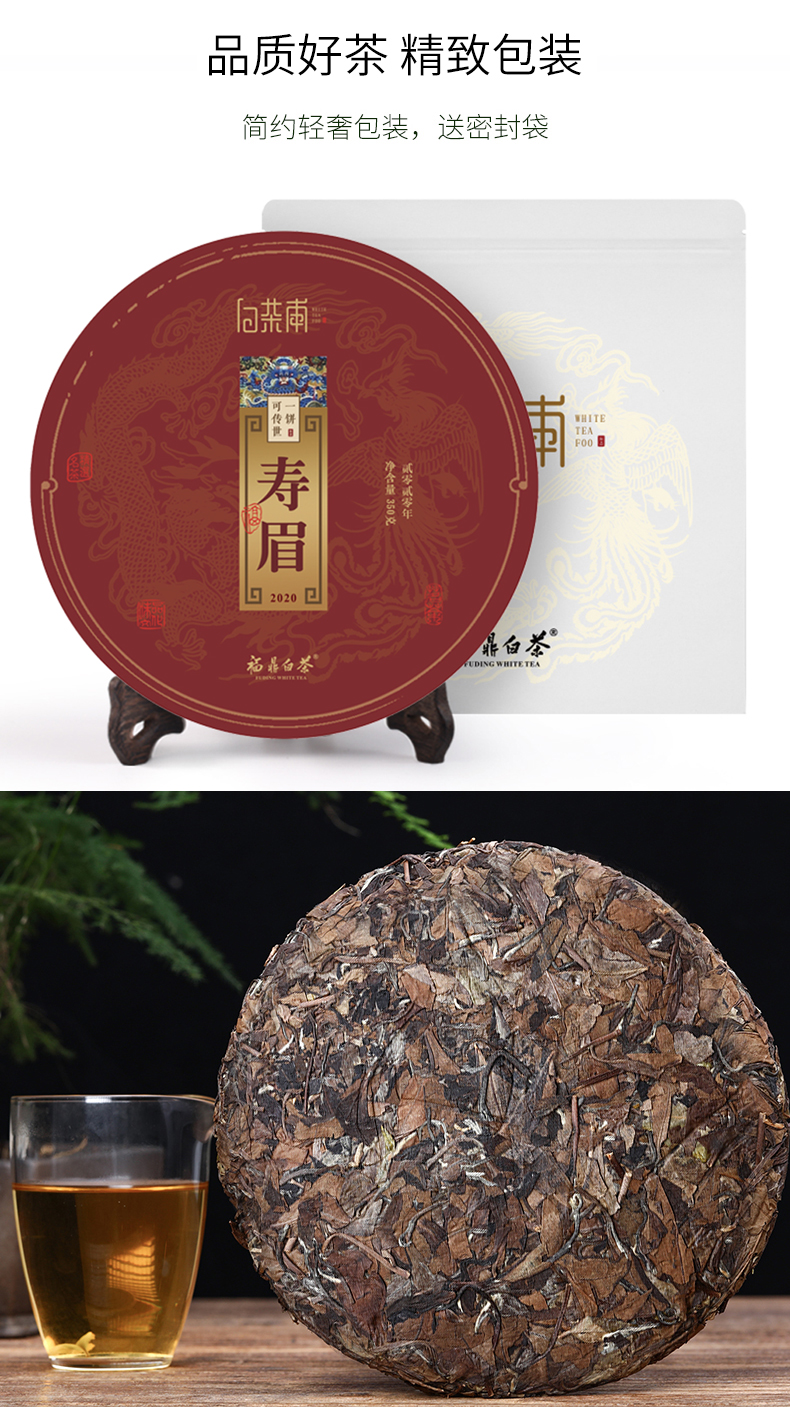 这款白茶甫的福鼎白茶,产自福鼎白茶原产地福鼎市,选用2019年的贡眉为原料。干茶色泽黄褐相间,并且压制紧实,打开茶饼,条索完整,不易断碎;茶汤入口柔顺,醇和甜润;茶底红褐明亮,色泽均匀,叶质柔软,带有甜香。