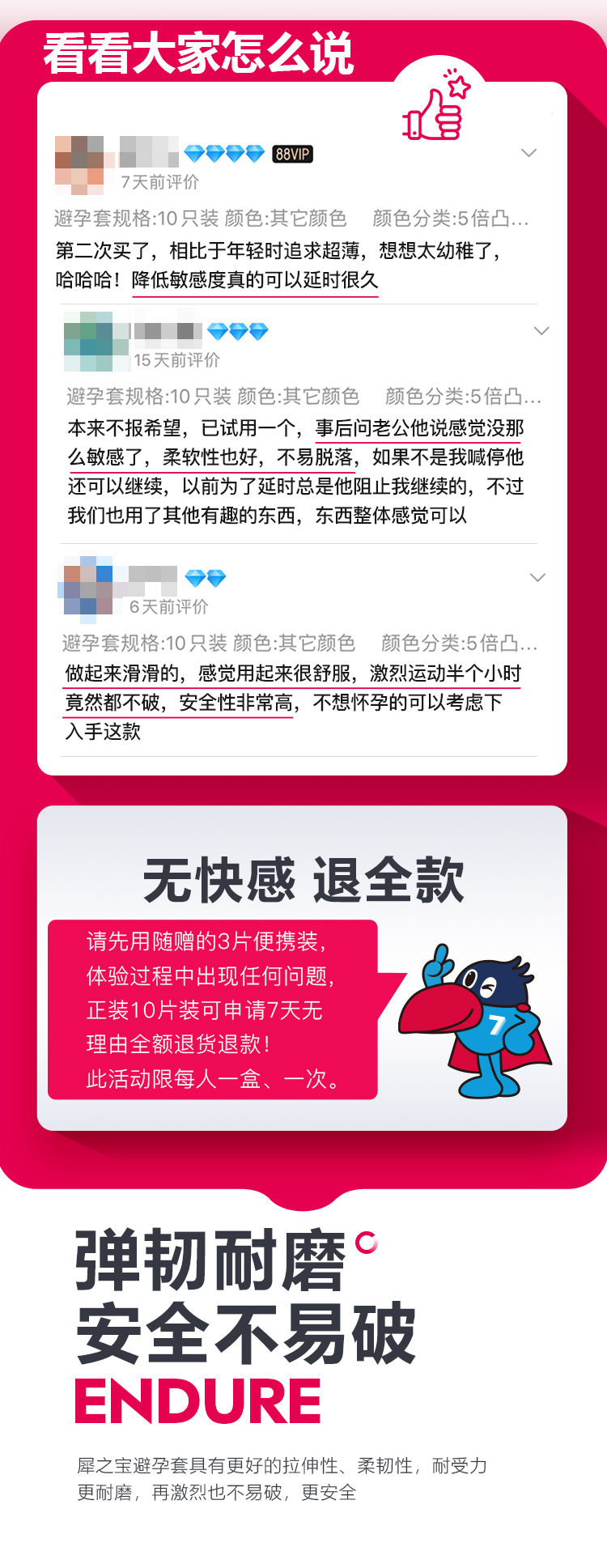 天猫thickpro旗舰店129.5元,可领100元优惠券,实付29.5元到手,5倍平滑款,到手后可拆开3片便携装试用,感觉不满意,无快感可申请7天无理由,退回10只正装款即可,5倍厚适合轻中度敏感的朋友,肤感超柔,加厚延时不丧失快感。