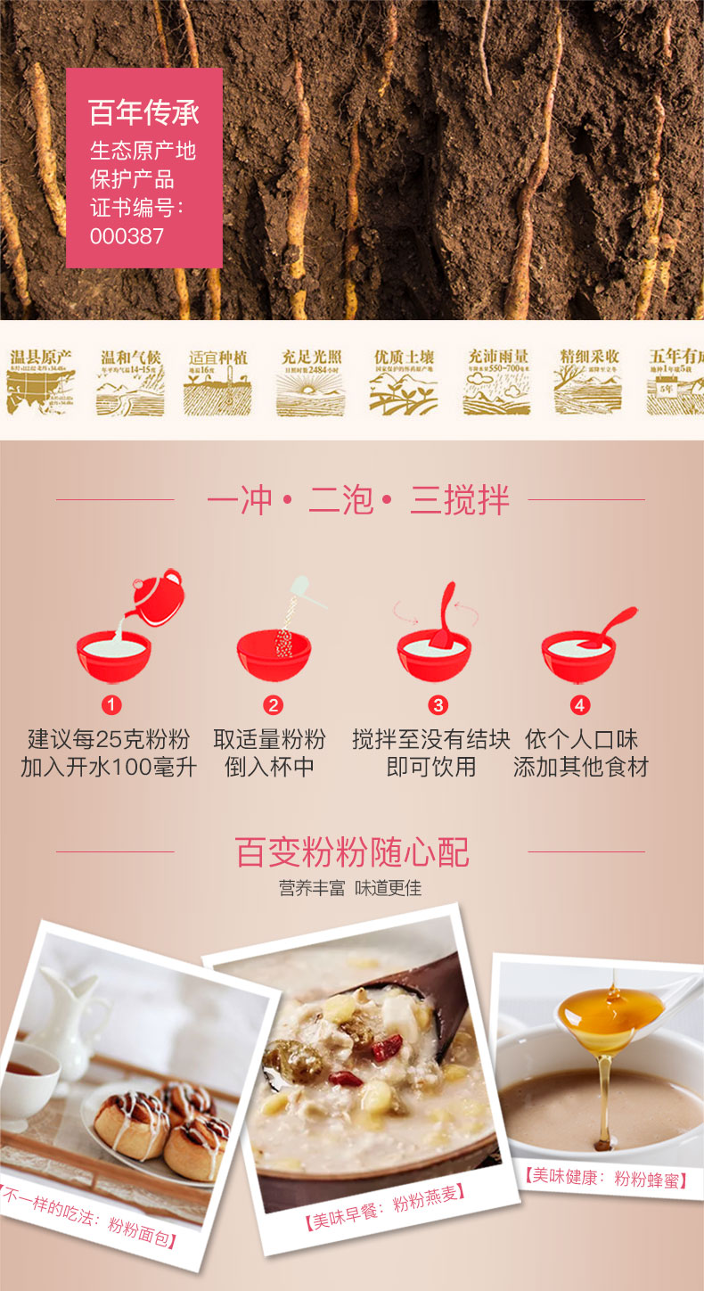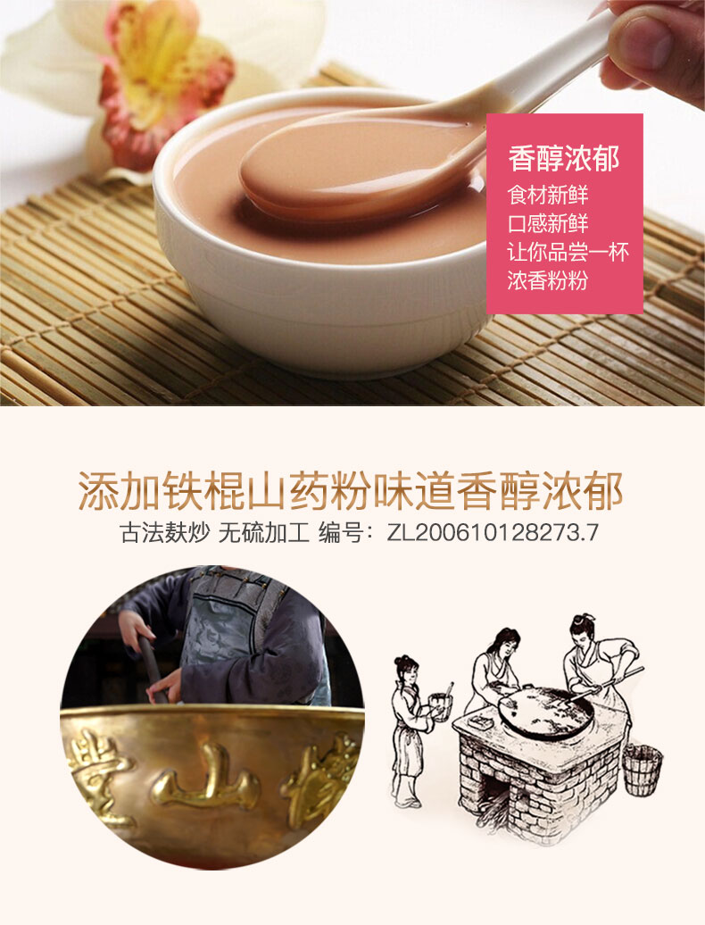 这款怀山堂 铁棍山药红豆薏米粉 甄选优质红小豆、贵州薏米、铁棍山药进行细致研磨,无食品添加剂、无蔗糖,粉质细腻易吸收,口感香滑浓郁。红豆薏米具有补血健脾,祛湿排毒的功效,山药具有健脾养胃功效,搭配着一起使用,特别适合于脾胃虚弱,湿气太重的人。PS:孕妇禁用。