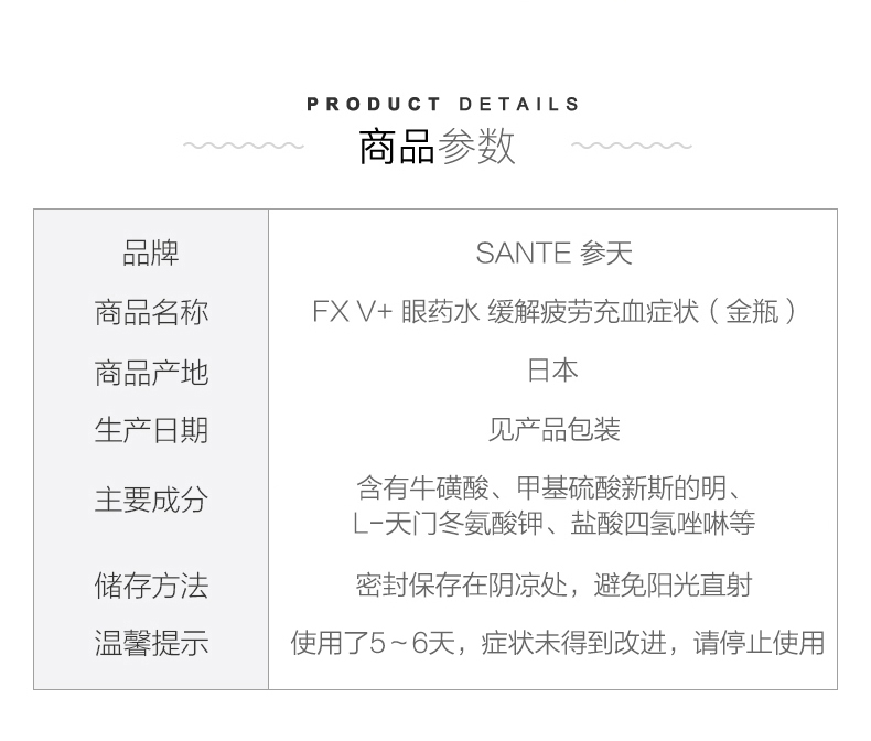 这款参天 FX 金装眼药水,日本原产,能缓解视力疲劳,促进机能改善,有效抑制眼痒、充血、炎症等蒸症状,滋润眼部,缓解干涩。