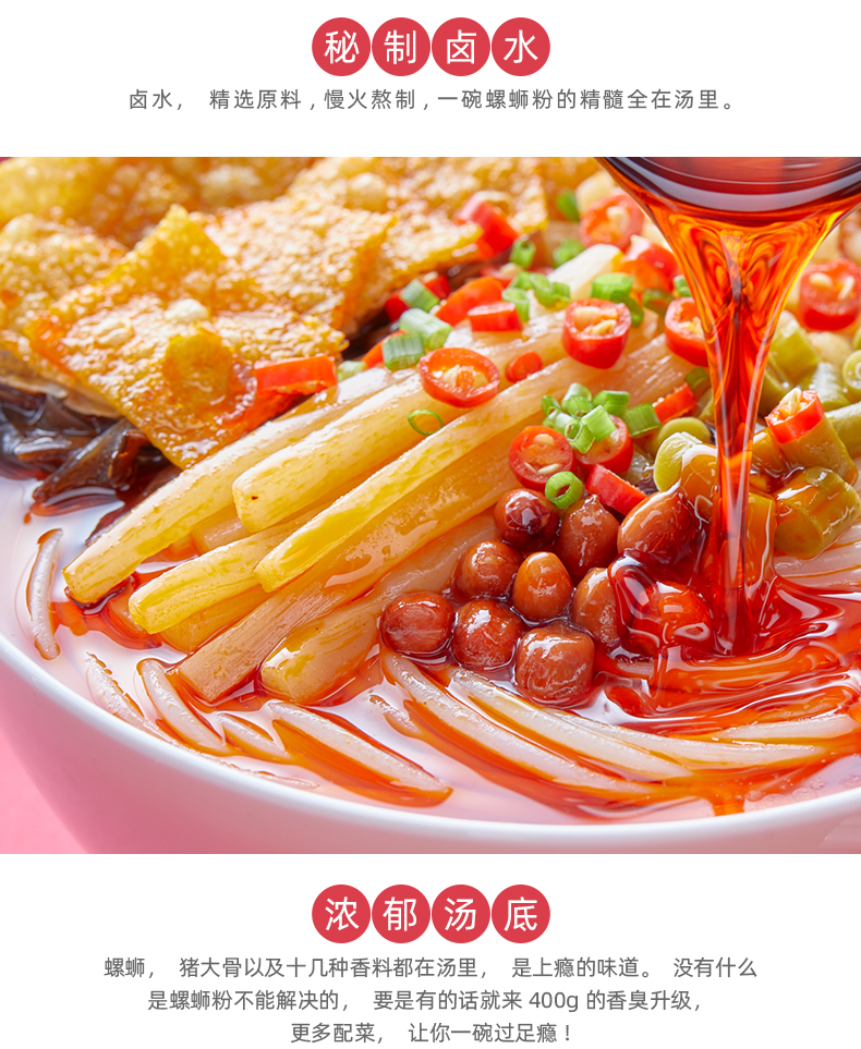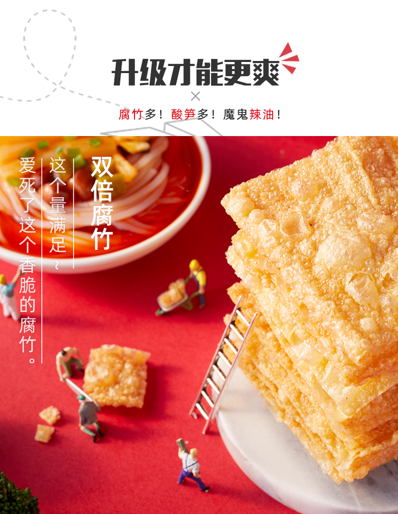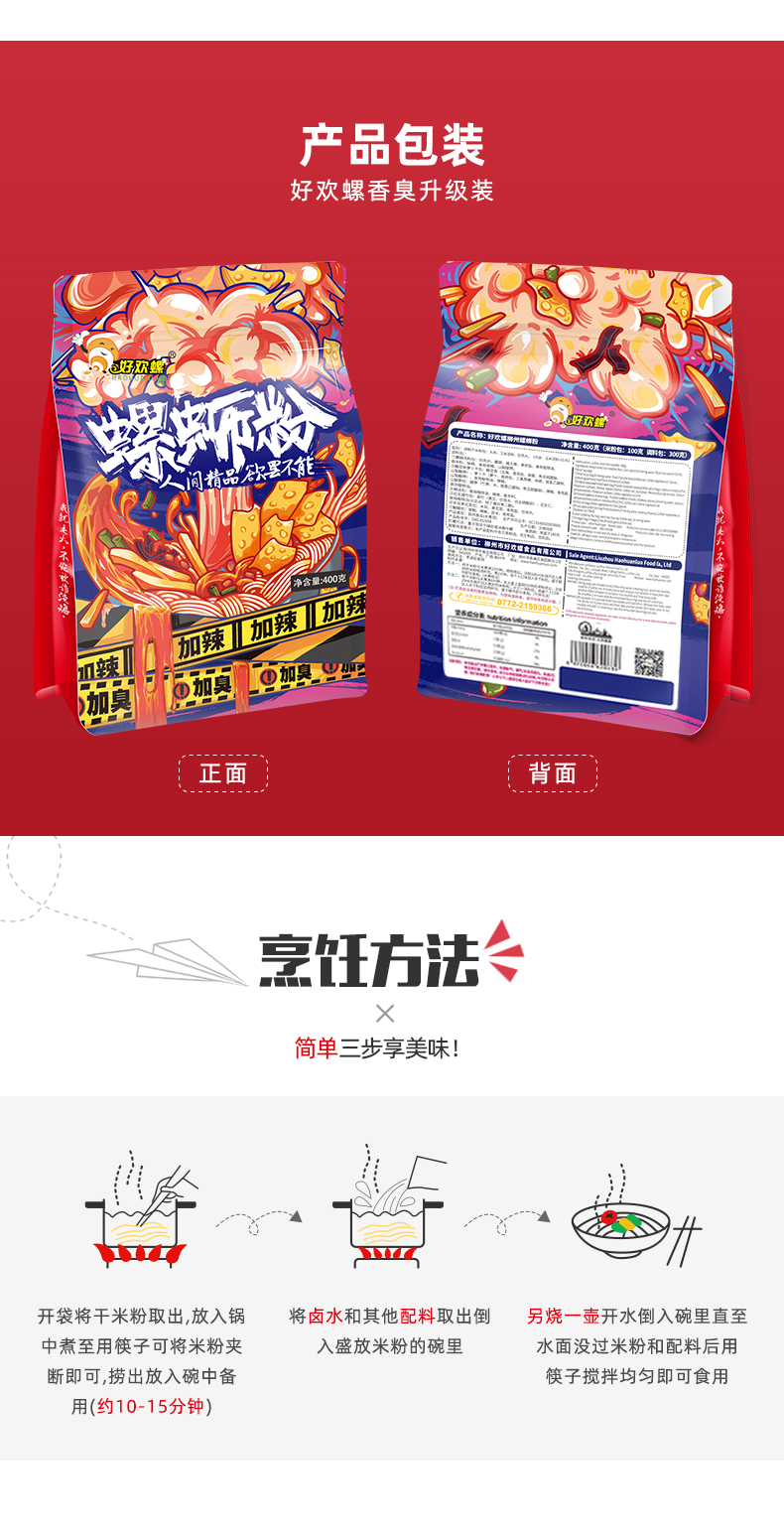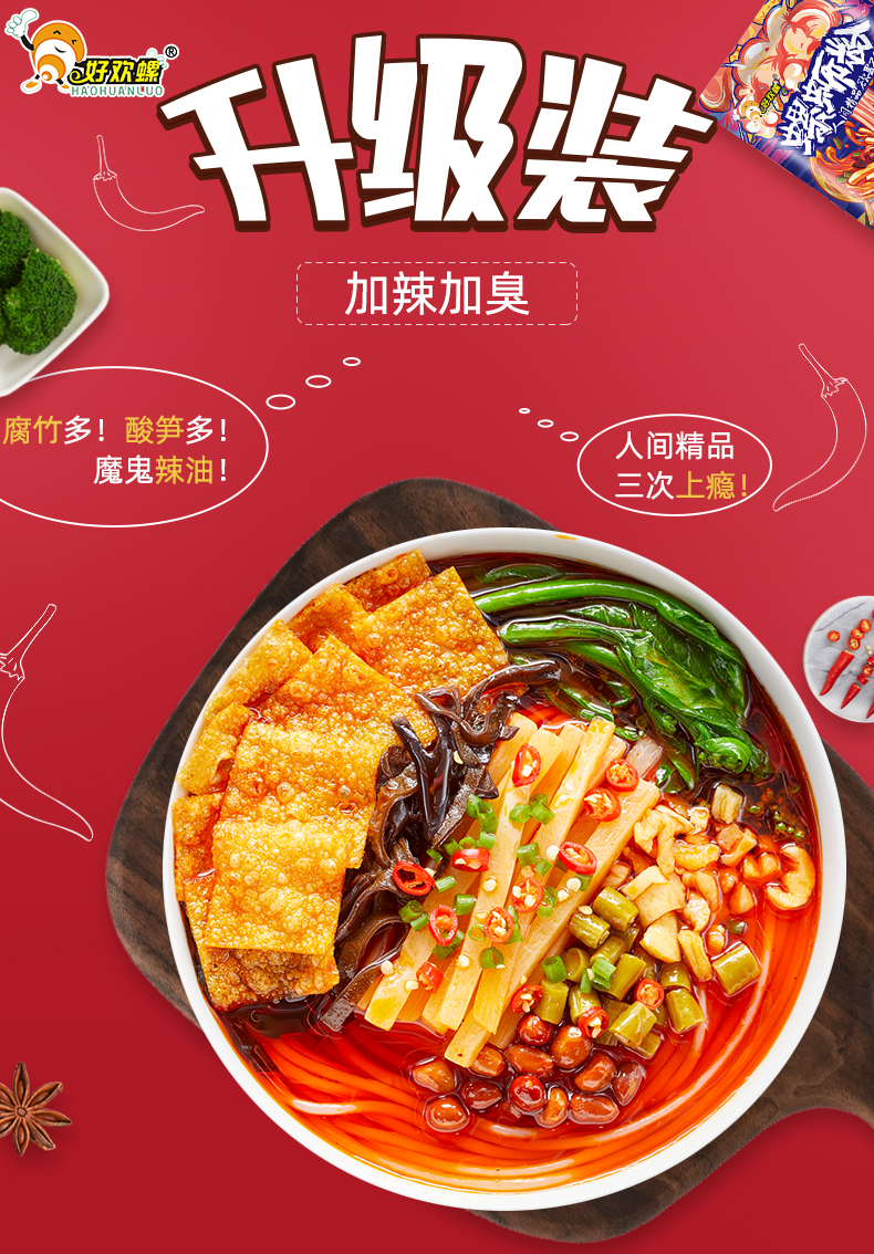 这款好欢螺螺蛳粉是升级版,较平常版本多了100g,单袋加了1元左右,加量腐竹、加量酸笋、加辣。
