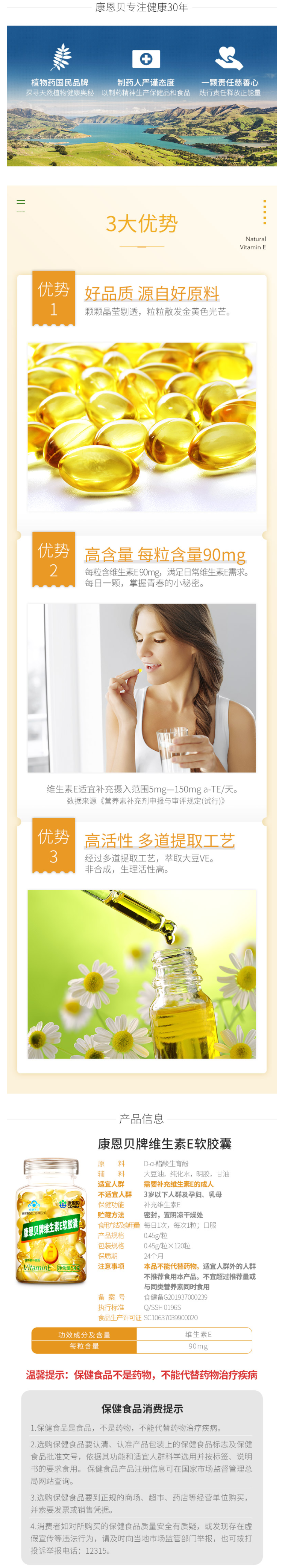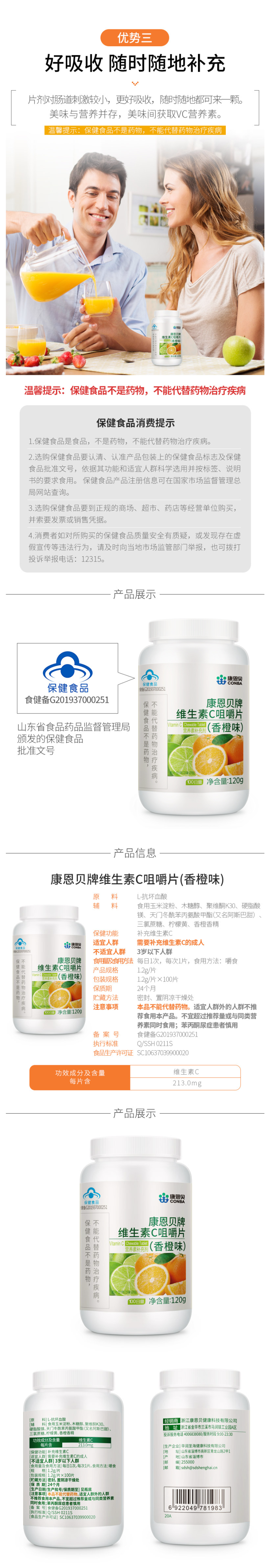 这款康恩贝拥有国家颁布的蓝帽子认证,可在国家食品药品监督管理局查询到。维生素C咀嚼片每粒含维生素C 213mg、维生素E软胶囊每粒含维生素E 90mg,两者共同服用,满足身体所需,同时搭配好吸收。