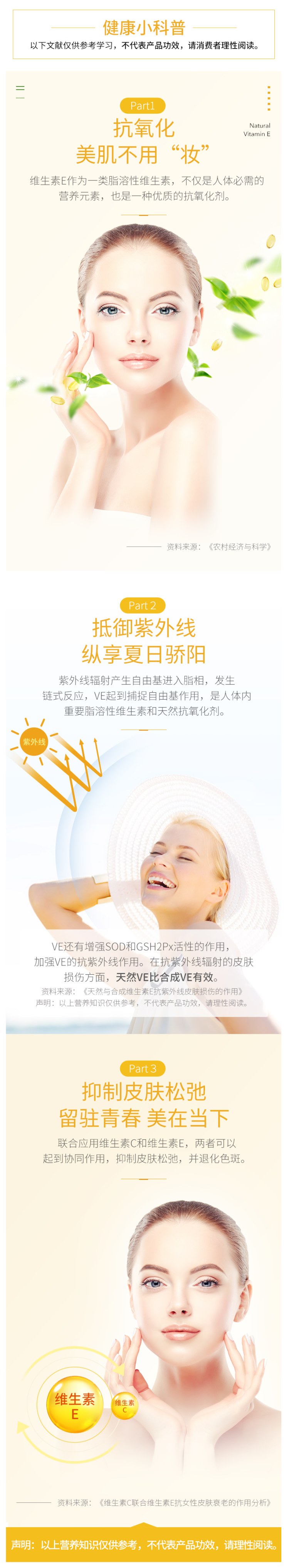 维生素C与维生素E协同作用,共同对抗紫外线与自由基对抗肌肤各种亚健康问题,美白养颜抗衰老,增强抵抗力,提升免疫力。